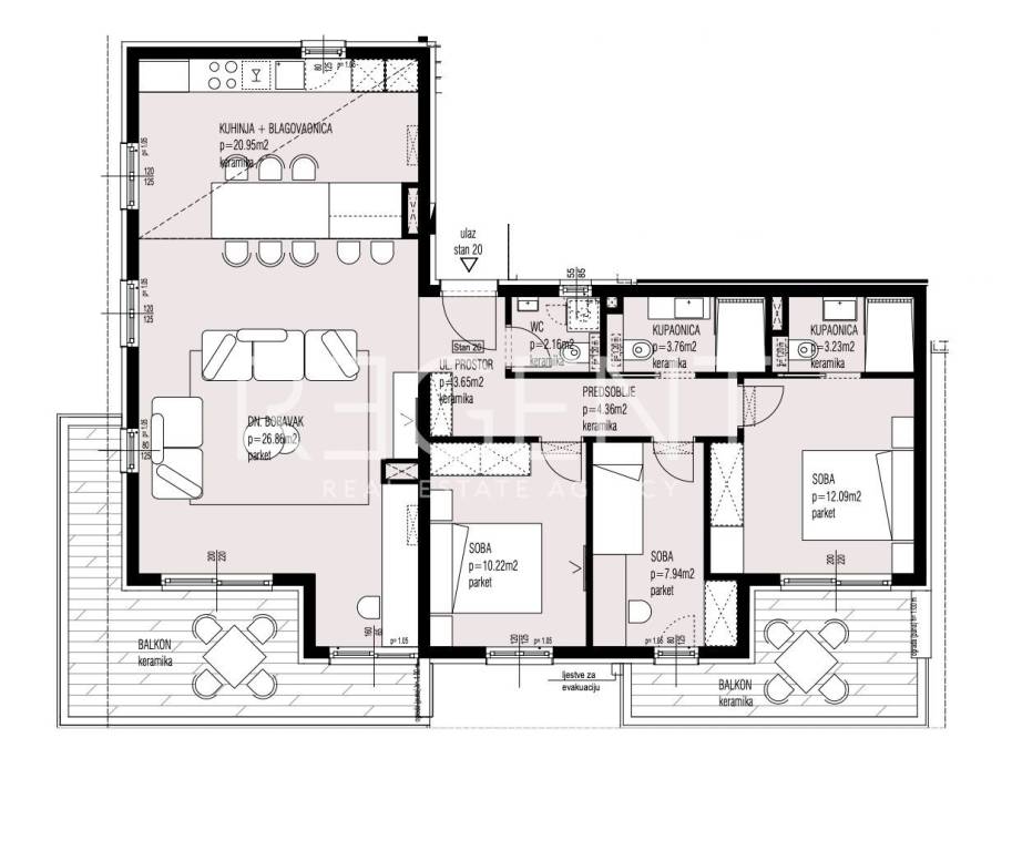 Die Wohnung befindet sich in Seget Donji, in ausgezeichneter Lage in unmittelbarer Nähe von Trogir. Sie befindet sich im dritten Stock eines modernen Neubaus mit insgesamt drei Stockwerken, der nach hohen Baustandards errichtet wurde, die Komfort, Funktionalität und Wohnqualität gewährleisten. Die gesamte Wohnfläche der Wohnung beträgt 95,52 m². Der Grundriss der Wohnung umfasst: – drei Schlafzimmer – Wohnzimmer – Esszimmer – Küche – Flur – zwei Badezimmer – Abstellraum – Eingangsbereich – Balkon Im Preis sind zwei Parkplätze enthalten, was ein zusätzlicher Vorteil dieser Immobilie ist. Die Lage der Wohnung bietet eine perfekte Kombination aus der Nähe zum Meer, dem Hotel Medena und attraktiven Stränden auf der einen Seite und der Erreichbarkeit aller notwendigen Annehmlichkeiten wie Geschäfte, Restaurants und Cafés auf der anderen Seite. Die Nähe zu Trogir ermöglicht einen einfachen Zugang zu kulturellen und touristischen Angeboten, während die Lage der Wohnung selbst Ruhe und Privatsphäre garantiert. Ideal für dauerhaftes Wohnen oder als Investition für die touristische Vermietung. Für weitere Informationen und zur Vereinbarung eines Besichtigungstermins können Sie uns gerne kontaktieren.