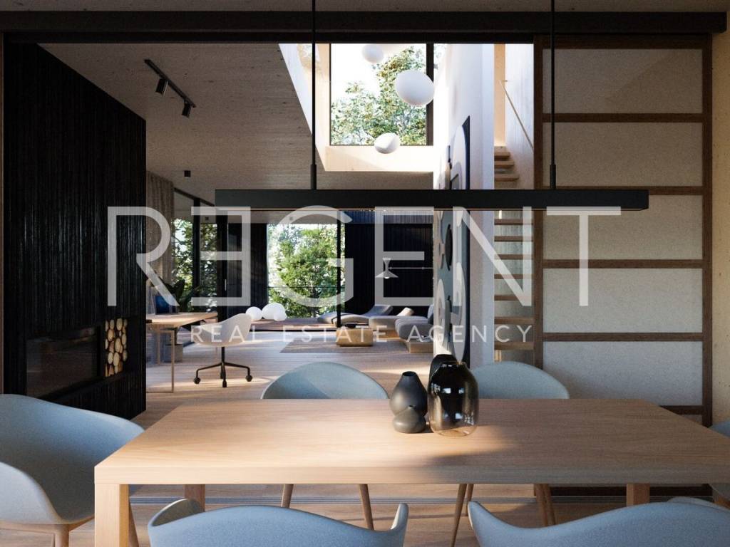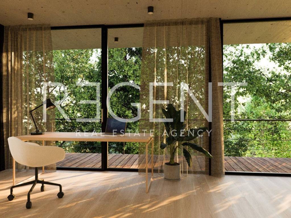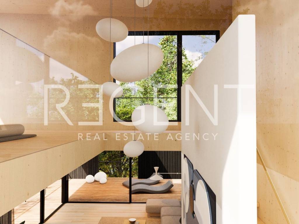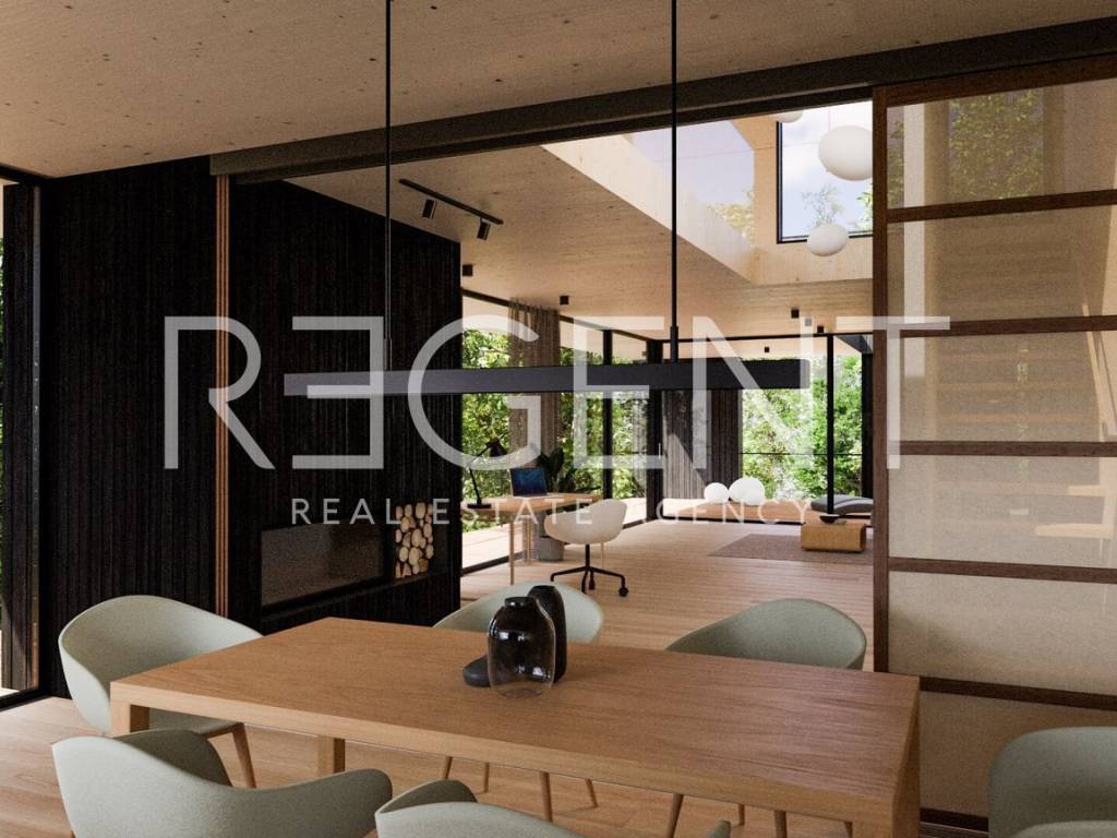Zum Verkauf steht ein Haus an den Hängen des nördlichen Teils von Zagreb in einer ruhigen Sackgasse mit mehreren Häusern auf dem Šestinski-Gipfel. Das Baugrundstück hat eine fast regelmäßige rechteckige Form mit einer Neigung des Geländes in Richtung Nord-Süd und Ost-West, von der aus man einen Blick auf die ganze Stadt hat. Das Konzept betont modernes urbanes Wohnen nach den Prinzipien des ökologischen Holzbaus und die Verbindung moderner Architektur nach den Prinzipien der Feng-Shui-Schule. Das Haus hat einen rechteckigen Grundriss, geometrisch klare Linien und eine Form, die von einem Aufenthalt in einem traditionellen Haus für Zeremonien im peruanischen Amazonasgebiet inspiriert ist. Die Idee war, dass diese Form auf Säulen direkt aus dem natürlichen Gelände und der Umgebung entsteht und dabei den Standort, die natürliche Neigung des Geländes und so wenig Eingriffe wie möglich in den bestehenden Boden und die Natur berücksichtigt. Die Ausrichtung nach allen Himmelsrichtungen ermöglichte eine ideale Positionierung des Hauses mit Schutz auf der Nordseite und Offenheit durch Glaswände und überdachte Terrassen nach Süden und Westen, bzw. zum Wald und Garten. Im Sommer ist es durch die Baumkronen von Laubbäumen geschützt, die ihm Schatten spenden, und im Winter öffnet sich der Blick auf die ganze Stadt und es ist Sonneneinstrahlung möglich. Die Überdachung der Terrassen resultierte aus der Berechnung der Sonneneinstrahlung, um die maximale Nutzung der Sonnenwärme im Laufe der Jahreszeiten zu erzielen. Die Konstruktion der Säulen und der ersten Deckenplatte ist aus Stahlbeton, während die gesamte übrige Konstruktion des Hauses aus CLT (Kreuzlagenholz) besteht, das neben seinen hervorragenden tragenden Eigenschaften auch günstige ökologische, ästhetische und energetische Eigenschaften besitzt, weshalb es im Innen- und Außenbereich größtenteils sichtbar belassen wurde. Die Fassadenverkleidung ist ebenfalls aus Holz, das mit der Shou Sugi Ban-Technik bearbeitet wurde, die im Japan des 18. Jahrhunderts entstand und zur Behandlung von Holz verwendet wird, um es widerstandsfähig gegen alle Wetterbedingungen zu machen und nicht gewartet werden muss. Das Ergebnis dieser Technik sind klare, deutliche Linien und die unermessliche Schönheit der Textur des Holzes, die unveränderlich ist. Das Haus ist mit drei oberirdischen Geschossen geplant, wobei die Umwelt maximal berücksichtigt wird. Das erste oberirdische Geschoss ist ein Souterrain, in dem sich die Garage und die technischen Räume befinden. Im Erdgeschoss als Hauptgeschoss befinden sich der Eingangsbereich im Osten, die Küche im Südosten, das Esszimmer, der Arbeitsbereich und das Wohnzimmer im Südwesten, ideal positioniert nach den Feng-Shui-Prinzipien. Im ruhigeren Teil des Erdgeschosses befindet sich ein Schlafzimmer mit Bad und Ausgang zur Terrasse. Das zurückgezogene Obergeschoss ist durch eine Galerie und eine Innentreppe mit dem Erdgeschoss verbunden, und auf der Galerie befindet sich ein Raum für Yoga, Meditation und Entspannung mit Blick auf den Wald und die Stadt. Im ruhigeren Teil des Obergeschosses befindet sich ein Schlafzimmer mit Bad. Es sind zwei Park- und Garagenplätze vorgesehen, einer in der Garage im Untergeschoss und der andere auf dem Baugrundstück an der dafür vorgesehenen Stelle neben der Zufahrt zur Garage.