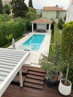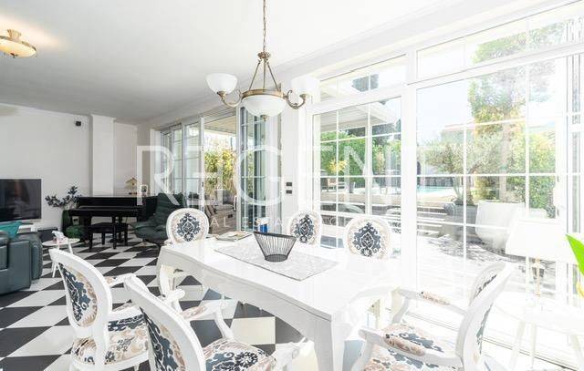 Diese beeindruckende Villa befindet sich in prestigeträchtiger Lage in Rovinj, nur wenige Schritte vom Meer entfernt. Im Jahr 2019 erbaut, wurde sie entworfen, um ein Höchstmaß an Luxus, Privatsphäre und Komfort zu bieten. Aufgrund ihrer Ausstattung und Lage stellt sie die ideale Wahl für das Familienleben, aber auch als Top-Investition im Luxustourismus dar. Mit einer Nettofläche von 396 m² auf einem Grundstück von 560 m² bietet die Villa eine luxuriöse Aufteilung mit insgesamt sieben Schlafzimmern und sieben Badezimmern. Das Zentrum bildet das geräumige Wohnzimmer, das mit Küche und Essbereich verbunden ist, während der Wellnessbereich mit Sauna eine private Oase der Entspannung schafft. Besonders beeindruckend sind drei Whirlpools, ein privater Pool und zwei Aufzüge, die Komfort und Exklusivität des täglichen Aufenthalts gewährleisten. Die Villa ist mit einem fortschrittlichen Smart-Home-System und einer Wärmepumpe ausgestattet, die höchsten Standards für Heizung und Kühlung entsprechen. Sie befindet sich in einem der begehrtesten Teile von Rovinj, bekannt für elegante Promenaden, erstklassige Restaurants und die Nähe zu den Stränden. Das Meer ist nur 100 Meter entfernt, was es ermöglicht, das luxuriöse Leben am Meer in vollem Umfang zu erleben. Das Anwesen ist komplett fertiggestellt und sofort bezugsfertig, und den Eigentümern stehen drei komfortable Außenparkplätze zur Verfügung. Für weitere Informationen oder zur Vereinbarung einer privaten Besichtigung kontaktieren Sie uns bitte vertrauensvoll.