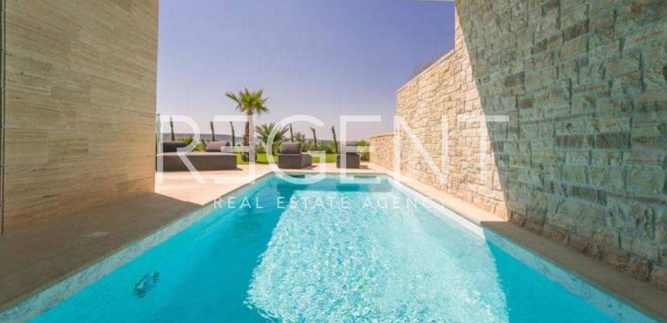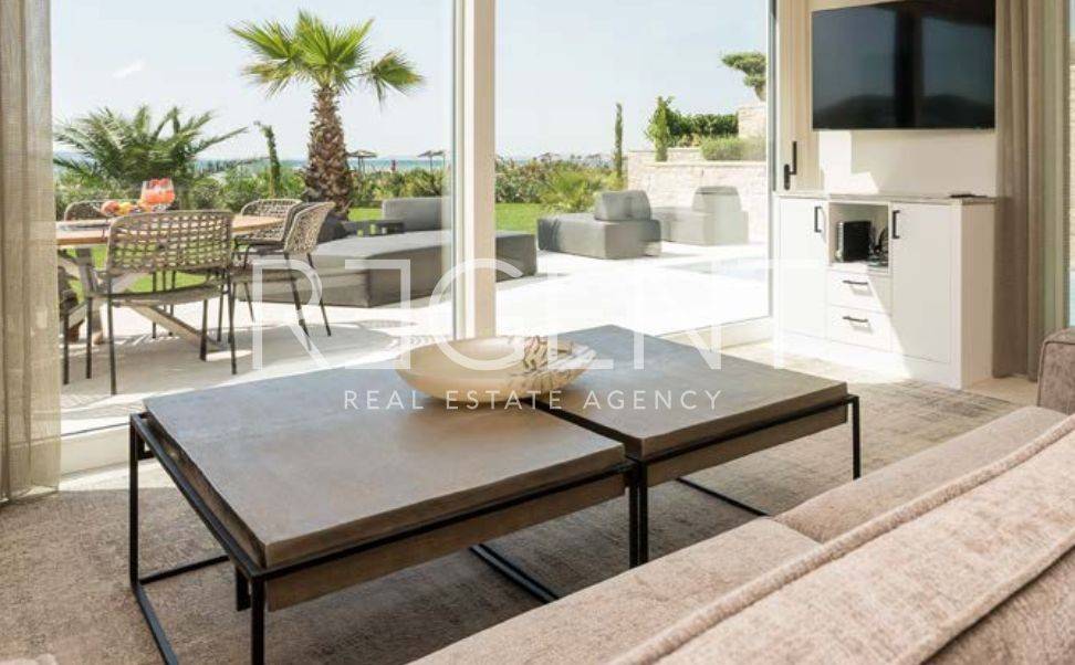 Exklusive Villa direkt am Strand in Ljubač, in attraktiver Lage in Norddalmatien. Das Objekt erstreckt sich über drei Etagen und ist ideal für Käufer, die Luxus, Privatsphäre und direkten Kontakt zum Meer suchen. Die Villa hat eine Gesamtwohnfläche von 316 m² und besteht aus drei geräumigen Schlafzimmern, jedes mit Ankleidezimmer und eigenem Badezimmer. Im ersten Stock befindet sich ein offener Wohn- und Essbereich mit Küche, während die Dachterrasse einen Wellnessbereich mit Sauna, Whirlpool, Außenküche und Essbereich bietet. Im Rahmen der Villa befinden sich auch ein Fitnessraum, luxuriös ausgestattete Badezimmer mit Naturstein, erstklassige Multimedia und ein Videoüberwachungssystem. Bodenbeläge aus Naturstein und ein Designer-Interieur unterstreichen zusätzlich Eleganz und Komfort. Standort Das Anwesen befindet sich in Ljubač, einem ruhigen dalmatinischen Ort, nur 20 km von Zadar und dem internationalen Flughafen entfernt. Die Nähe zum historischen Nin, der Insel Pag und dem Nationalpark Krka macht diesen Standort perfekt für ein entspanntes Leben oder einen luxuriösen Urlaub. Die Villa liegt direkt am Strand mit direktem Zugang zum Meer, während Geschäfte, Restaurants und Annehmlichkeiten nur wenige Autominuten entfernt sind. Technische Daten Das Gebäude wurde im Oktober 2022 fertiggestellt und das Grundstück nimmt eine Fläche von 703 m² ein. Im Rahmen des Anwesens befinden sich ein 30 m² großer Pool, ein mediterraner Garten mit automatischer Bewässerung, zwei Außenparkplätze und die Möglichkeit, eine XXL-Garage mit Anschluss für E-Mobilität zu erwerben. Die Villa wird komplett ausgestattet und bezugsfertig oder zur Vermietung verkauft. Der Preis beträgt 3.250.000 EUR (netto). Handlungsaufforderung Für weitere Informationen oder zur Vereinbarung einer Besichtigung kontaktieren Sie uns bitte.