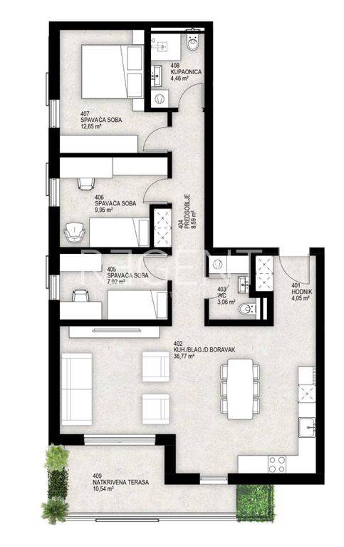 Zwei-Zimmer-Wohnung im Erdgeschoss, in ausgezeichneter Lage in Sinj. Die Wohnung befindet sich in einem modernen Neubau und ist ideal für Familien, Investoren und Paare. Die Wohnfläche beträgt 84,84 m2 und besteht aus einem Flur, einem Wohnzimmer mit Küche und Essbereich, zwei Schlafzimmern und einem Badezimmer. Neben dem Innenraum verfügt die Wohnung über eine Loggia und eine überdachte Terrasse. Sie ist mit PVC-Fenstern und -Türen, Fußbodenheizung in den Badezimmern und Klimaanlagen ausgestattet. Für die Bodenbeläge sind Porzellanfliesen und Mehrschichtparkett vorgesehen, und jeder Raum bietet den ganzen Tag über viel Licht. Das Gebäude befindet sich in ruhiger Lage mit ausgezeichneter Anbindung und in der Nähe aller wichtigen Einrichtungen – Schulen, Geschäfte, Parks und unberührte Natur. Das Objekt befindet sich im Bau, die Fertigstellung ist für 2026 geplant. Zusätzlich zur Wohnung ist es möglich, einen überdachten oder unbedeckten Außenstellplatz zu erwerben. Für weitere Informationen oder zur Vereinbarung einer Besichtigung kontaktieren Sie uns bitte.
