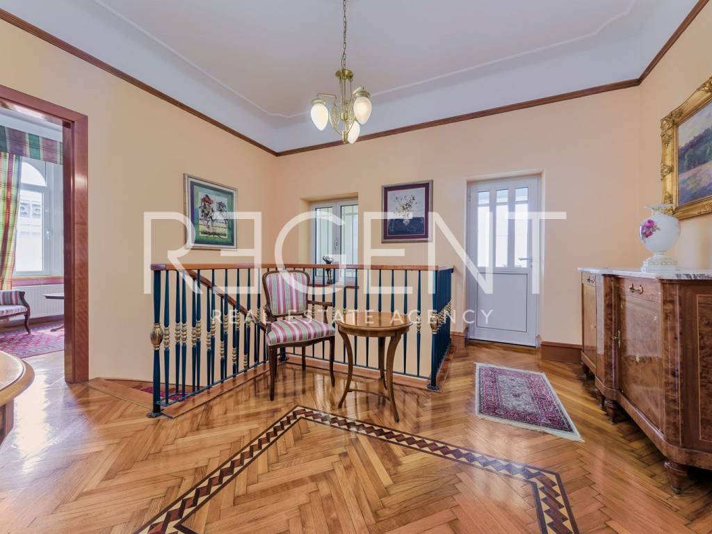Zum Verkauf steht eine luxuriöse Familienvilla mit 325 m2, die sich auf 3 Etagen auf einem Grundstück von 538 m2 in einer ruhigen Gegend von Šalata mit herrlichem Blick auf die Stadt erstreckt, nur 5 Gehminuten vom Stadtzentrum entfernt. Das Untergeschoss ist als Raum für Entspannung und Freizeit konzipiert und umfasst mehrere Einrichtungen für Aufenthalt und Erholung. Hier befinden sich ein Billardtisch, eine Sauna, ein Weinkeller, eine Küche und zwei Sanitäranlagen. Das Untergeschoss ist durch einen internen Korridor und einen Treppenraum verbunden, und von der Garage aus ist ein direkter Zugang zum Inneren des Hauses möglich. Im Erdgeschoss befindet sich ein Eingangsbereich, vor dem sich ein Gästebad befindet, ein Vorraum, der zum Wohnzimmer führt, das auch ein Esszimmer ist. Im 1. Stock des Hauses befinden sich drei Schlafzimmer, Badezimmer und eine Terrasse mit herrlichem Ausblick. Das Haus verfügt außerdem über eine Garage, einen Abstellraum, einen Lagerraum, eine Terrasse und einen Garten. Dieses Haus wurde 1936 erbaut und die Tischlerei ist aus Holz. Ein Bus ist erreichbar und nur 2 Minuten vom Haus entfernt. Für weitere Informationen können Sie uns gerne kontaktieren.