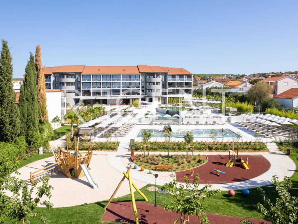 Im Herzen Dalmatiens, in der Nähe von Zadar, direkt am Ufer des malerischen Ortes Sv. Filip i Jakov gelegen, befindet sich ein 5-Sterne-Komplex, der aus einem Hotel und sechs Gebäuden mit 60 Residenzen besteht. Hier vereint sich alles, was man für einen idealen Familienurlaub braucht – von Wellness- und SPA-Bereichen, einem Fitnesscenter, Restaurants, Bars, einem Kinderspielzimmer, Spielplätzen, Pools und einem gepflegten Strand vor dem Resort bis hin zu einem neuen Yachthafen in unmittelbarer Nähe. Das Molum Hotel & Residences zeichnet sich durch eine Kombination aus moderner Architektur und raffiniertem Ambiente aus, die von authentischen Orten und inspirierender Natur, liebevollen Details und charmanten Besonderheiten geprägt ist, die unvergessliche Erinnerungen schaffen und einen Einblick in eine völlig andere Lebensweise geben. In dem Resort befindet sich die Residenz Typ A, die sich im 1. Stock befindet und aus drei Schlafzimmern, zwei Badezimmern, einem Wohnzimmer mit Küche und Esszimmer sowie zwei geräumigen Loggien besteht. Die Residenz hat eine geschlossene Wohnfläche von 84,06 m2, die mit der Loggia insgesamt 101,40 m2 beträgt. Alle Residenzen sind nach höchsten Qualitäts- und Funktionalitätsstandards konzipiert und zeichnen sich durch ein minimalistisches Design aus, das von Einflüssen der Adria-Motive inspiriert ist – Felsen, Wald, Olivenhain, Bewegungen der Meereswelle und des Windes. Sie sind mit erstklassiger Ausstattung und Technologien ausgestattet, die einem tadellosen Service und unvergesslichen Emotionen dienen. Derzeit befindet sich der Bau und die Gestaltung des gesamten Touristendorfes in der Umsetzungsphase. Die Fertigstellung der Arbeiten und die Eröffnung des Dorfes sind für den 1. Juli 2024 geplant. Alle Residenzen sind nach höchsten Qualitäts- und Funktionalitätsstandards konzipiert und zeichnen sich durch ein modernes Design aus. Sie sind mit erstklassiger Ausstattung und Technologien ausgestattet. Das Molum Hotel & Residences zeichnet sich durch eine Kombination aus authentischen Orten und inspirierender Natur, liebevollen Details und charmanten Besonderheiten aus, die unvergessliche Erinnerungen schaffen und einen Einblick in eine völlig andere Lebensweise geben. Für alle weiteren Informationen können Sie uns gerne kontaktieren!