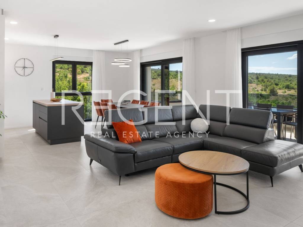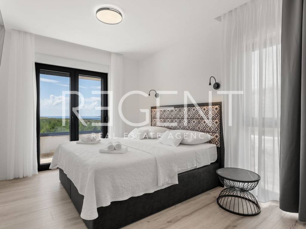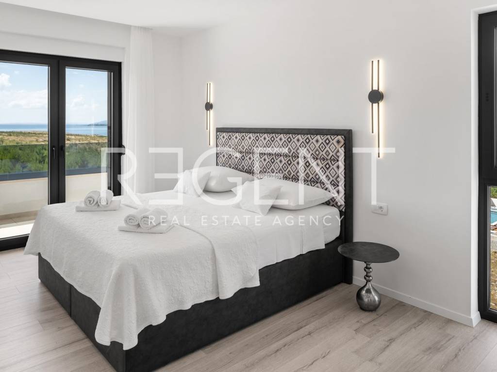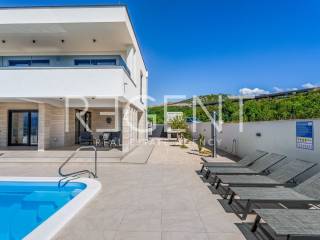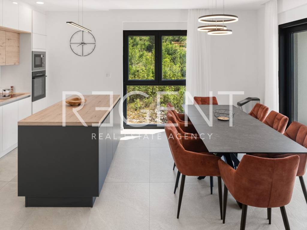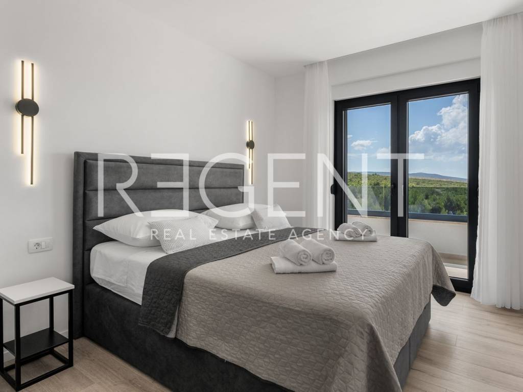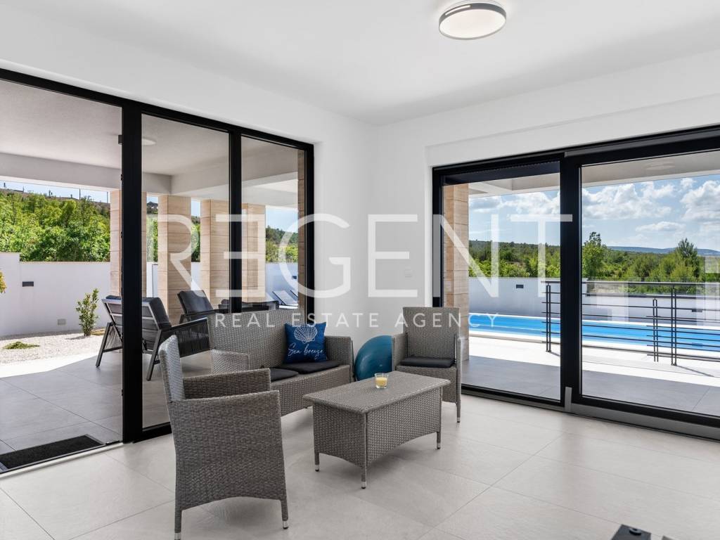 Moderne, neu gebaute Villa in einem ruhigen Teil von Rovanjska bei Zadar, nur 300 Meter vom Meer und Strand entfernt. Besteht aus: ERDGESCHOSS: Eingangshalle, Aufenthaltsraum mit Ausgang zur überdachten Terrasse, separates WC, Vorraum, zwei Schlafzimmer mit Balkonzugang, zwei Badezimmer, Waschküche, Abstellraum und Innentreppe. ERSTER STOCK: Innentreppe, Vorraum, Küche, Esszimmer und Wohnzimmer in offenem Konzept mit Balkonzugang und Meerblick, zwei Schlafzimmer und zwei Badezimmer Die Villa wurde hochwertig gebaut, mit einer eingebauten Isolierfassade und ist komplett mit luxuriösen Möbeln ausgestattet. Jeder Raum verfügt über eine professionelle Mitsubishi Klimaanlage, die das Heizen und Kühlen der Räume ermöglicht. Außerdem wurde die Vorbereitung für Fußbodenheizung und die Installation einer elektrischen Wärmepumpe durchgeführt. Die Villa ist hochwertig gebaut mit einer Isolierfassade und ist komplett mit luxuriösen Möbeln ausgestattet. Alle Räume sind mit hochwertigen Mitsubishi Geräten klimatisiert, die zum Heizen und Kühlen dienen. Außerdem wurde die Vorbereitung für Fußbodenheizung und die Installation einer elektrischen Wärmepumpe durchgeführt. Das Grundstück ist komplett angelegt, und im Hof befindet sich ein Außenpool mit einer Fläche von 26 m² mit Sonnenliegen und Dusche. Es gibt auch Außenparkplätze für mehrere Autos. Die Lage der Villa ist hervorragend verkehrsgünstig gelegen, der Anschluss an die Autobahn A1 ist nur wenige Autominuten entfernt, während der Strand und alle wichtigen Einrichtungen nur 300 Meter entfernt sind. Für weitere Informationen und Besichtigungen kontaktieren Sie uns bitte.