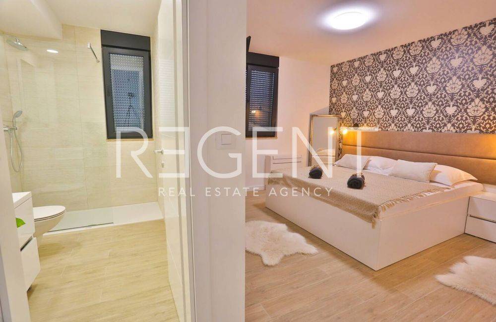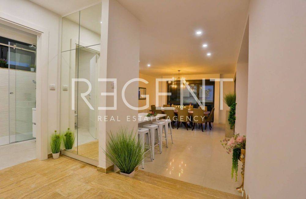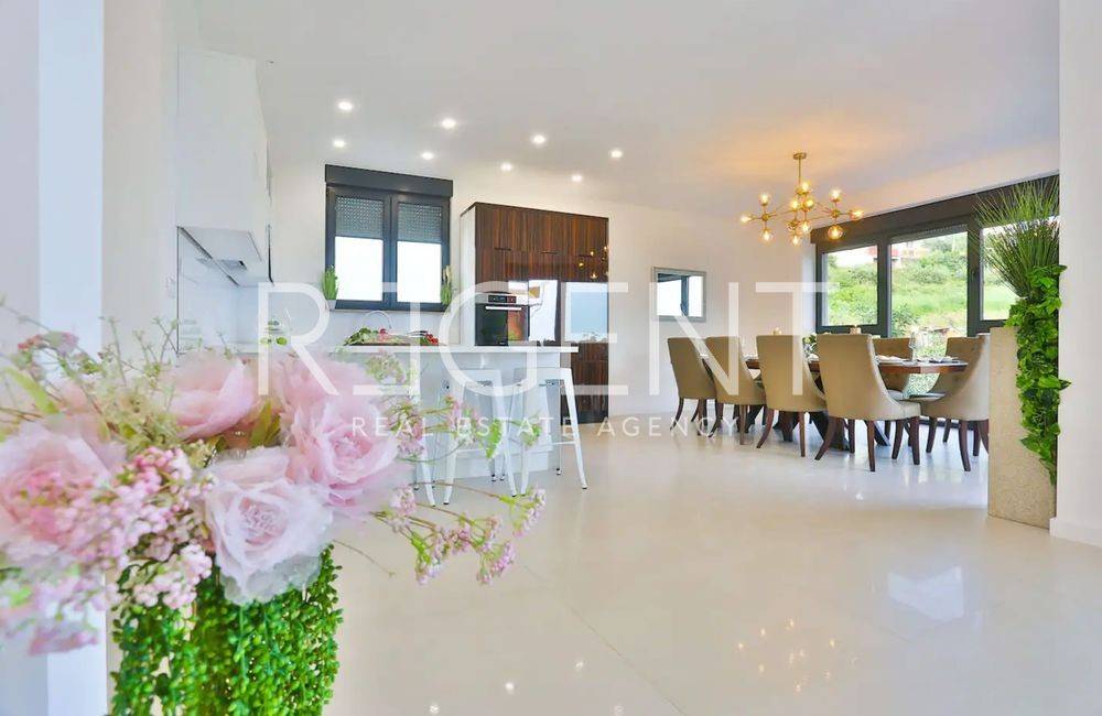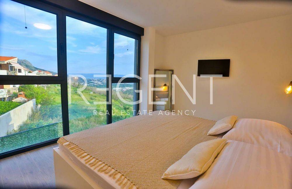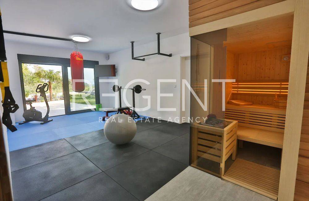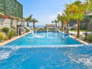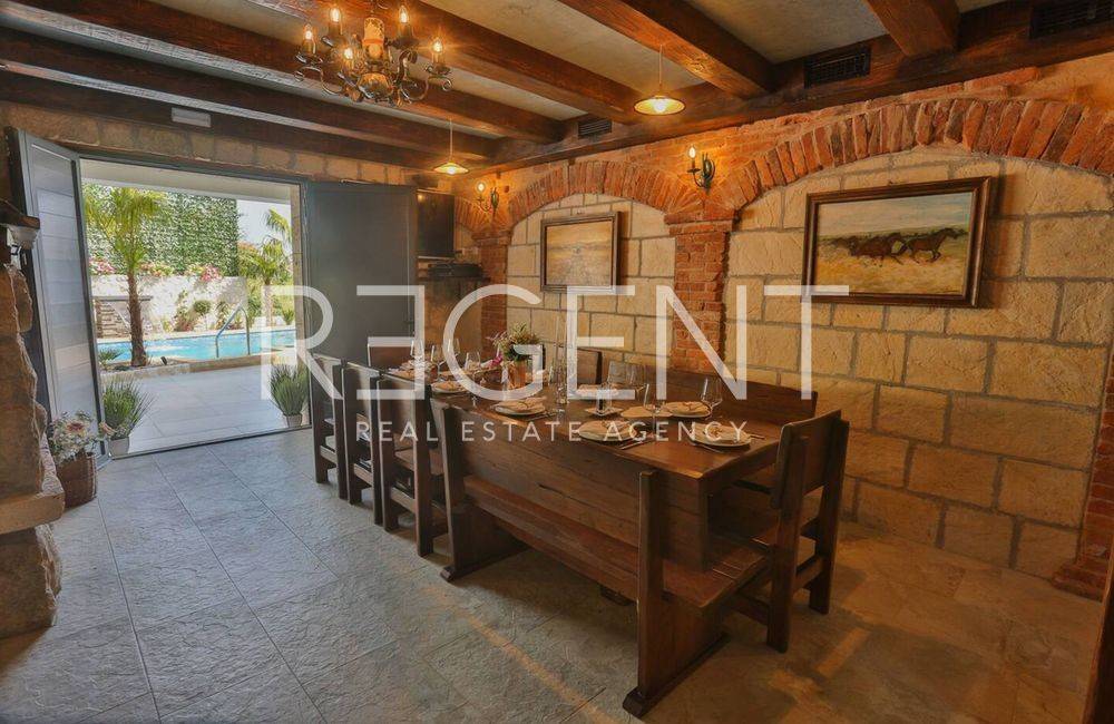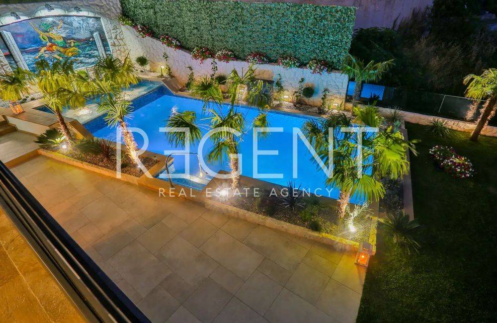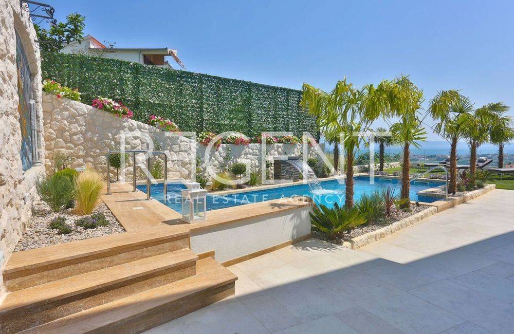 Wir vermitteln beim Verkauf einer luxuriösen Villa mit einer Gesamtfläche von 700 m2 in einem ruhigen Vorort von Split, in Kučine. Das Zentrum von Split und der Diokletianpalast sind nur 10 Autominuten entfernt.Die Villa besteht aus Erdgeschoss, erstem und zweitem Stock.Das Erdgeschoss mit einer Gesamtfläche von 100 m2 umfasst einen 40 m2 großen Pool mit einzigartigem Design, umgeben von viel Grün, und einen großen Garten mit Grill. Es gibt auch eine traditionelle Taverne mit Zugang zum Pool, eine Bio-Sauna, einen ausgestatteten Fitnessraum und ein Unterhaltungszimmer mit Billard und Darts.Im ersten Stock, ebenfalls mit einer Gesamtfläche von 100 m2, befindet sich eine voll ausgestattete moderne Küche, ein geräumiges Wohnzimmer und eine große Terrasse mit Blick auf die Adriaküste.Der zweite Stock mit 100 m2 verfügt über geräumige vier Schlafzimmer, jedes mit eigenem Bad. Drei Schlafzimmer bieten einen herrlichen Blick auf das Meer, die Inseln Brač und Šolta. Alle Zimmer in der Villa verfügen über Klimaanlage, LCD-Fernseher, Fußbodenheizung und ein eigenes Bad.Die Villa ist mit Designermöbeln, Beleuchtung und Teppichen ausgestattet, während die beim Bau verwendeten Materialien Travertin, Slawonische Eiche, Porzellan, Marmor und Granit sind. Ein besonderes Merkmal ist die Taverne mit Innenkamin, die von einem bekannten kroatischen Designer entworfen wurde.Die Villa umfasst drei Außenstellplätze.Alle oben genannten Eigenschaften machen die Villa zu einem wahren Spiegelbild von Luxus und Einzigartigkeit.Für alle Informationen können Sie uns gerne kontaktieren!