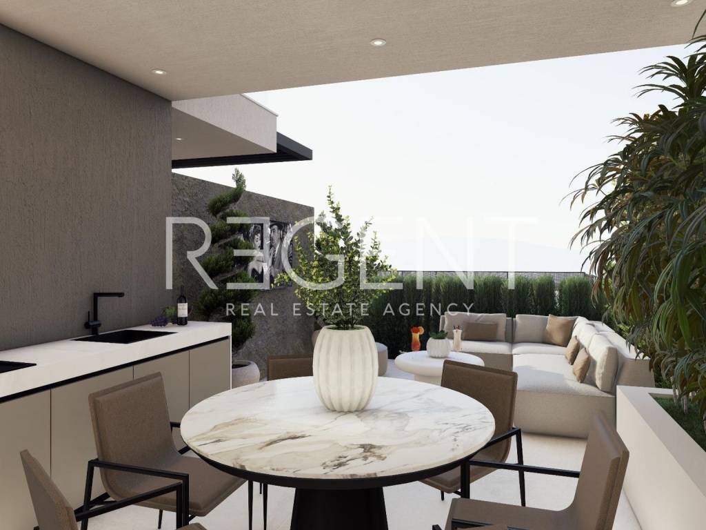 Zum Verkauf steht eine Einzimmerwohnung im Erdgeschoss eines neuen Wohngebäudes mit insgesamt fünf Wohnungen, in einer ruhigen und grünen Gegend im Westen von Trogir gelegen. Die Lage ermöglicht einen einfachen Zugang zu allen wichtigen Einrichtungen – von Geschäften, Schulen und Kindergärten bis hin zu Verkehrsanbindungen nach Split, Kaštela und zum Flughafen. Die Wohnung mit einer Gesamtfläche von 90,33 m² besteht aus einem geschlossenen Wohnbereich von 70,70 m², einer überdachten Terrasse von 12,65 m², einer nicht überdachten Terrasse von 19,15 m² und einem Privatgarten von 27,45 m². Die Südausrichtung und die vielen Fenster sorgen für reichlich Tageslicht, und die funktionale Aufteilung umfasst: einen Eingangsbereich, ein Wohnzimmer mit Küche und Essbereich, zwei Schlafzimmer, ein Badezimmer, eine Toilette und einen Abstellraum. Vom Wohnzimmer aus gibt es einen direkten Zugang zu den Außenbereichen – Terrasse und Garten – die einen zusätzlichen Wert und ein Gefühl von Geräumigkeit bieten. Die Wohnung wird mit PVC-Fenstern mit Rollläden, Keramikfliesen im Großformat, Sanitäranlagen von höherem Standard sowie Heiz- und Kühlsystemen über Split-Geräte ausgestattet. Im Badezimmer ist eine Vorbereitung für Fußbodenheizung vorgesehen, und jede Wohnung hat eigene Wasser- und Stromanschlüsse. Ein Parkplatz ist im Preis inbegriffen und befindet sich auf dem umzäunten Grundstück des Gebäudes. Die Wohnung hat einen separaten Eingang und einen eigenen Außenbereich, was das Maß an Privatsphäre und Komfort zusätzlich erhöht. Der Baubeginn ist für September 2025 vorgesehen, die Fertigstellung der Arbeiten ist bis Ende 2026 geplant. Der Kauf ist stufenweise, also etappenweise, entsprechend dem Baufortschritt möglich. Diese Immobilie ist ideal für Familien, Paare oder Einzelpersonen, die eine funktionale Wohnung mit Garten in einer ruhigen mediterranen Umgebung suchen, und sie ist auch eine attraktive Option für eine Investition mit langfristigem Mietpotenzial. Für weitere Informationen sowie einen Besichtigungstermin kontaktieren Sie uns bitte!