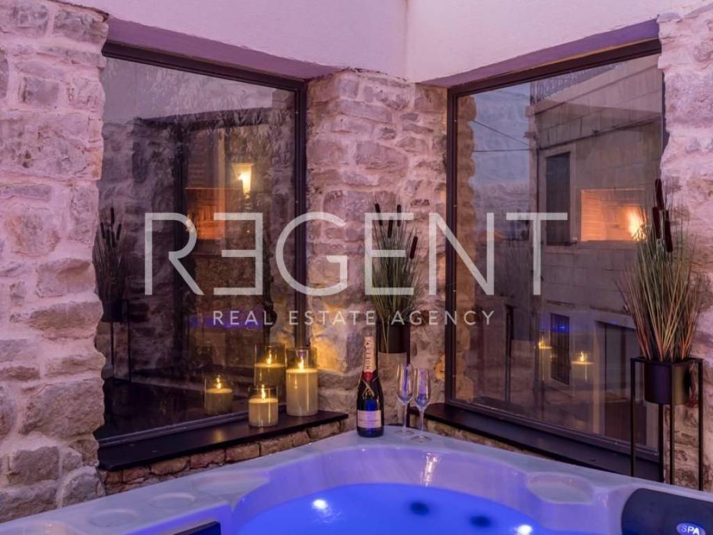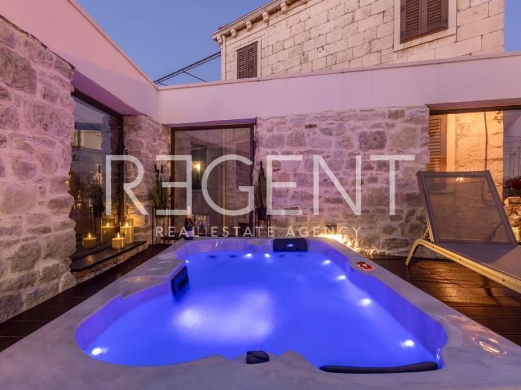 Im Zentrum von Supetar befindet sich eine Steinvilla mit einer Wohnfläche von 77 m2 auf einem Grundstück von 150 m2. Diese Immobilie ist auch ein Kulturgut der Stadt Supetar.Das Erdgeschoss dieser Villa besteht aus: einem Wohnzimmer mit einer Deckenhöhe von über vier Metern, was den Raum großzügig macht, einer modernen Küche und einem Badezimmer mit Waschküche und zusätzlicher Toilette. Das Obergeschoss bietet zwei Schlafzimmer mit eigenem WC.Der Außenbereich der Villa besteht aus einer Sommerterrasse mit Kamin, Whirlpool und Sonnenterrasse und bietet den idealen Ort zum Entspannen und Genießen.Diese Villa ist von einer Steinmauer umgeben, die ein Gefühl von Privatsphäre und Ruhe vermittelt, während die Holzschreinerei und die Fliesen eine Eleganz und ein warmes Ambiente des Hauses selbst bieten.Die Lage der Villa ist nur wenige Meter vom Meer entfernt, in der Nähe aller notwendigen Einrichtungen, darunter Restaurants, Geschäfte, Schulen/Kindergärten und Strände.Für weitere Informationen oder eine Besichtigung kontaktieren Sie uns noch heute!