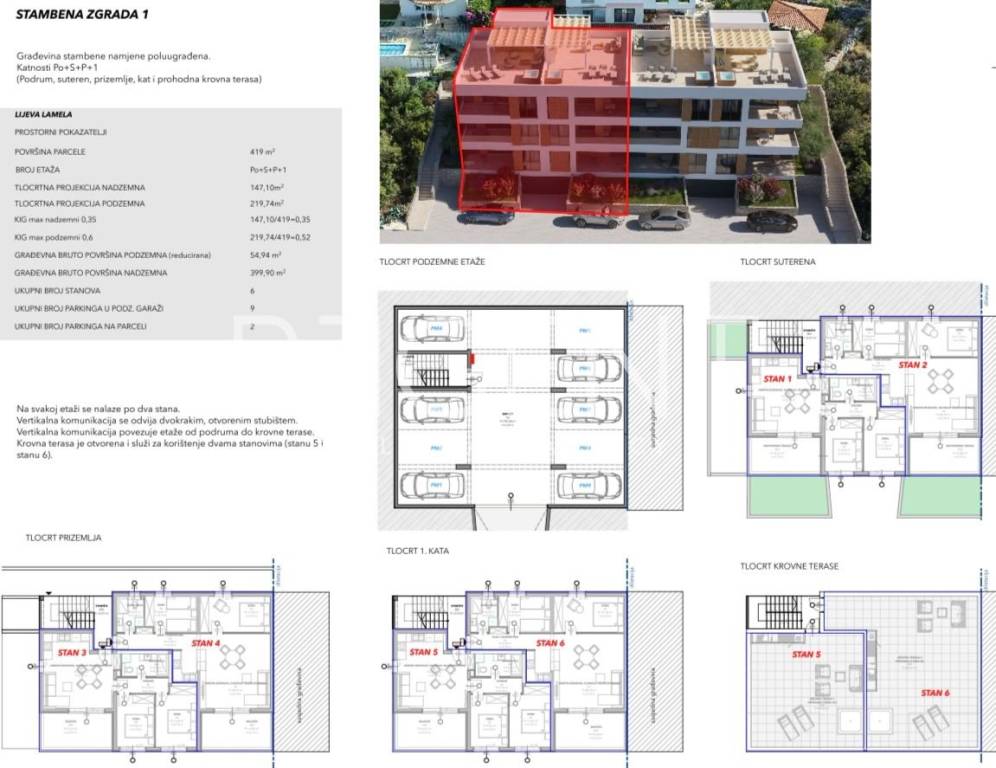 Wohnung im Hochparterre, in ausgezeichneter Lage in Trogir. Die Wohnung befindet sich in einem Stahlbeton-Neubau und ist ideal für Familien oder Paare, die die Nähe zum Meer und eine ruhige Umgebung wünschen. Sie hat eine Gesamtnettofläche von 52 m² und besteht aus einem Wohnzimmer mit Küche und Essbereich, zwei Schlafzimmern, einem Badezimmer und einem Flur. Zusätzlich gibt es einen Balkon von 12 m² mit wunderschönem Meerblick. Es ist mit PVC-Tischlerei, Klimaanlage und hochwertigen Böden ausgestattet, und jeder Raum bietet viel Licht und ein angenehmes Ambiente. Die Wohnung befindet sich in einem ruhigen Teil von Trogir, mit ausgezeichneter Anbindung und der Nähe zu allen wichtigen Einrichtungen – Schulen, Geschäften, Parks und öffentlichen Verkehrsmitteln sind nur wenige Minuten entfernt. Das Meer und der Strand sind etwa 350 m entfernt. Das Gebäude ist ein Stahlbeton-Neubau mit Garage und befindet sich derzeit im Bau, die Fertigstellung der Arbeiten ist innerhalb von 8 bis 10 Monaten vorgesehen. Der Bezug ist nach Abschluss der Arbeiten möglich. Die Zahlung ist in Raten mit flexiblen Bedingungen möglich. Für weitere Informationen oder zur Vereinbarung eines Besichtigungstermins kontaktieren Sie uns bitte.