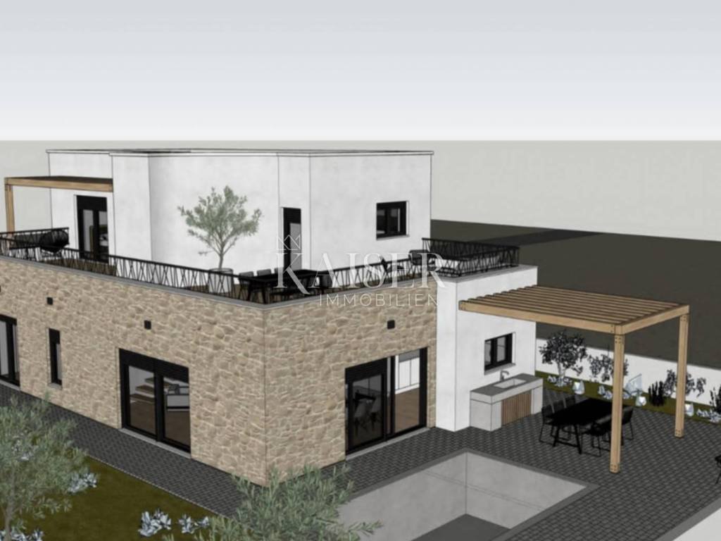 Kaiser Immobilien präsentiert stolz: Moderne zweistöckige Villa mit Garage und großzügigen Terrassen in Vodice. In ruhiger und begehrter Lage in Vodice befindet sich diese wunderschöne, neu gestaltete zweistöckige Villa, die moderne Architektur, Luxus und Funktionalität perfekt vereint. Das Anwesen wurde mit dem Ziel maximalen Komforts entworfen und ist ideal für Familien. Großzügige Innenräume und wunderschöne Außenbereiche ergänzen das Gesamtbild. ÜBER DAS OBJEKT: Die freistehende Villa erstreckt sich über zwei Etagen und bietet eine Wohnfläche von 196,60 m². Der durchdachte Grundriss sorgt für optimale Raumnutzung, viel Tageslicht und ein offenes Raumgefühl. Zur Immobilie gehören eine große Garage, drei Schlafzimmer, mehrere Badezimmer und äußerst großzügige Terrassen, die zum Entspannen und geselligen Beisammensein einladen. AUFTEILUNG DER VILLA: ERDGESCHOSS (Wohnfläche 114,80 m²): Das Herzstück des Hauses bildet ein großzügiger, offener Wohnbereich, der Küche, Esszimmer und Wohnzimmer vereint und direkten Zugang zur überdachten Terrasse bietet. Ein separater Schlafbereich im Erdgeschoss sorgt für zusätzliche Privatsphäre. Küche, Esszimmer und Wohnzimmer: 45,10 m² Schlafzimmer 1: 13,00 m² Badezimmer: 3,20 m² Garage: 35,00 m² Eingangsbereich: 4,60 m² Abstellraum: 4,10 m² Gäste-WC: 2,70 m² Überdachte Terrasse: 13,80 m² ERDGESCHOSS (Gesamtnutzfläche 81,80 m²): Das Obergeschoss ist als ruhige Oase der Entspannung gestaltet. Es besteht aus zwei weiteren Schlafzimmern, zwei Badezimmern und Zugang zu zwei großen Terrassen. Eine Terrasse bietet absolute Privatsphäre, die andere ist ein großzügiger Bereich zum Genießen der Natur. Flur: 11,40 m² Schlafzimmer 2: 14,30 m² Schlafzimmer 3: 12,40 m² Badezimmer 2: 4,50 m² Badezimmer 3: 3,40 m² Überdachte Terrasse: 15,30 m² Nicht überdachte Terrasse: 40,80 m² LAGE: Die Villa befindet sich in exzellenter Lage in Vodice. Sie bietet Ruhe und Privatsphäre und ist gleichzeitig gut an alle wichtigen Einrichtungen angebunden. Die Nähe zum Meer und den wunderschönen Stränden, für die Vodice bekannt ist, trägt zusätzlich zur hohen Lebensqualität bei. Diese moderne Villa ist eine außergewöhnliche Gelegenheit für alle, die ein Traumhaus suchen, das höchsten Ansprüchen an zeitgemäßes Wohnen gerecht wird. Die Maklerprovision für den Käufer beträgt 3 % zzgl. MwSt. und wird im Falle eines Immobilienkaufs mit Abschluss der ersten notariellen Urkunde fällig. Eine Besichtigung ist nur nach vorheriger Unterzeichnung eines Maklervertrags möglich. Wenn Sie die Immobilie persönlich besichtigen möchten, wenden Sie sich bitte an: Joško Bašić E-Mail: josko@kaiser-immobilien.hr Tel.: +385-91-511-2993 http://kaiser-immobilien.hr/