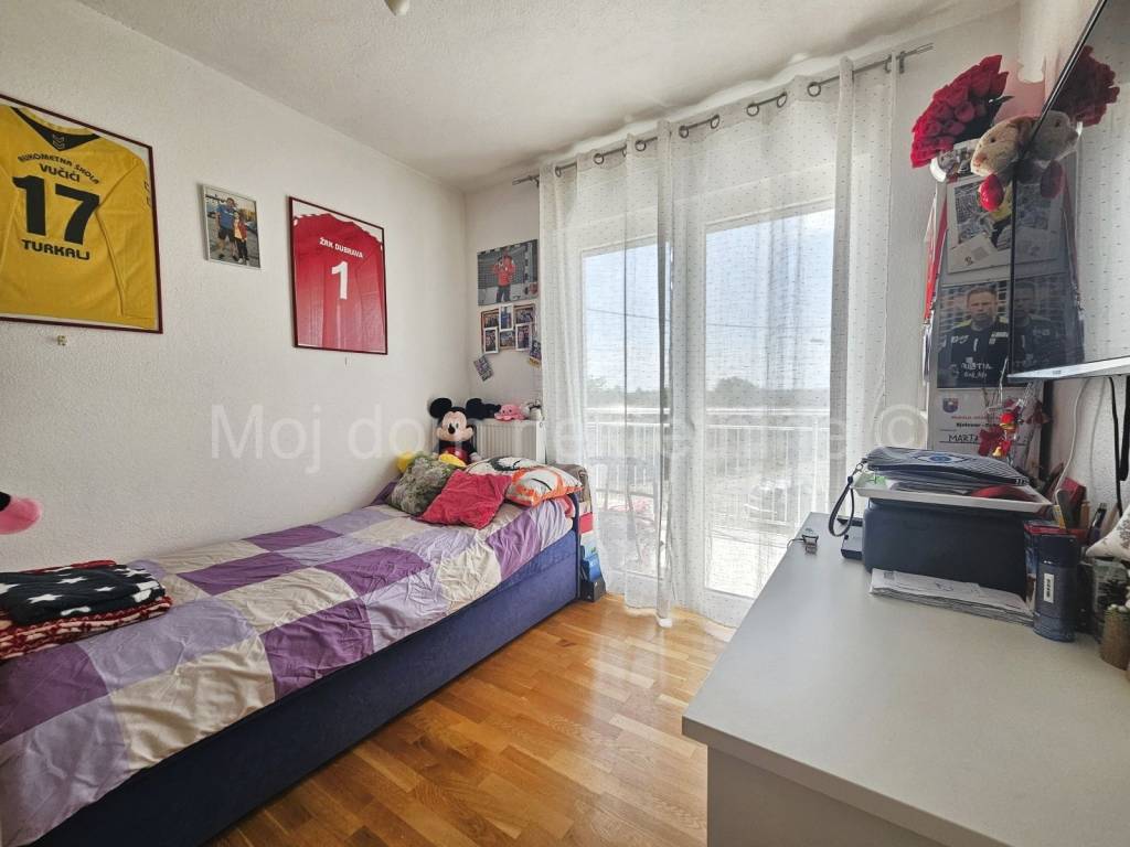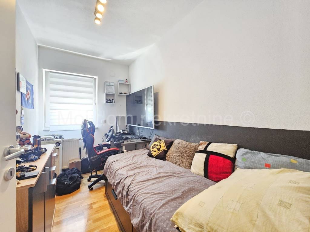 Prodaje se 4 soban stan s balkonom u novijoj zgradi. Nalazi se na 1. katu zgrade od 2 kata. Izrazito svijetao zbog svoje dvostrane orijentacije. Stan je opremljen protuprovalnim vratima i PVC stolarijom s roletama. Preinakom dnevne sobe dobivena je treća spavaća soba te se po potrebi jednostavno može vratiti u prvobitno stanje. U stanu je napravljena priprema s instalacijom za postavljanje klima uređaja Smješten je u blizini bitnih sadržaja. Stanu pripada parkirno mjesto (12.50m2).