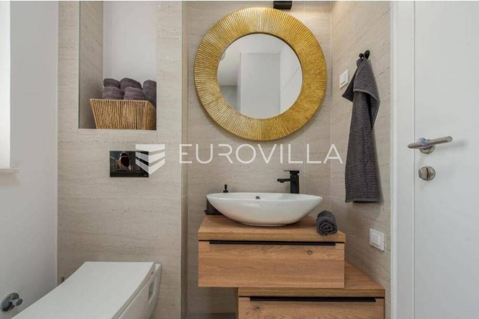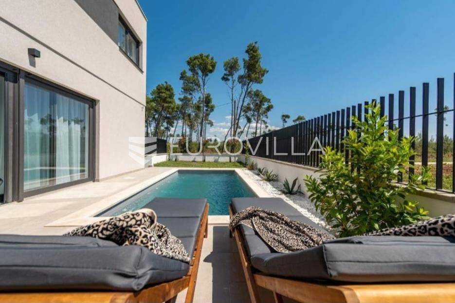 U srcu slikovite Privlake, predstavljamo iznimnu dvojnu vilu koja utjelovljuje suvremeni luksuz i udobnost. Ova elegantna rezidencija, smještena u mirnom naselju, nudi savršen spoj privatnosti i blizine svih važnih sadržaja.Vila se prostire na dvije etaže, s ukupnom korisnom površinom od 222,74 m2, smještena na zemljištu površine 433 m2. Dizajnirana s pažnjom prema detaljima, ova nekretnina nudi prostrani hodnik, praktičan WC, svijetao dnevni boravak, modernu kuhinju i blagovaonicu te ugodnu lođu u prizemlju. Na katu se nalaze tri udobne spavaće sobe i dvije elegantne kupaonice, pružajući dovoljno prostora za opuštanje i privatnost.Posebnost ove vile je vanjski prostor koji uključuje prekrasan bazen, idealan za osvježenje u vrućim ljetnim danima, te njegovani kućni vrt, savršen za opuštanje i uživanje u prirodi. Prostrana terasa nudi idealno mjesto za druženje s obitelji i prijateljima, dok su dva parkirna mjesta osigurana za vaše automobile.Interijer vile odiše elegancijom i bezvremenskim luksuzom. Kvalitetna alu stolarija, keramičke pločice velikog formata te moderna kuhinja opremljena vrhunskim uređajima samo su neki od detalja koji ovu vilu čine posebnom. Dnevni boravak krasi namještaj čistih linija, velike staklene stijene koje osiguravaju obilje prirodnog svjetla te ugrađena rasvjeta koja stvara ugodnu atmosferu.Ova energetska učinkovita nekretnina pruža ne samo luksuzan, već i održiv način života. Smještena u blizini Zadra, ova vila nudi savršenu ravnotežu između mirnog obiteljskog života i blizine urbanih sadržaja.Za sva dodatna pitanja slobodno nas kontaktirajte.