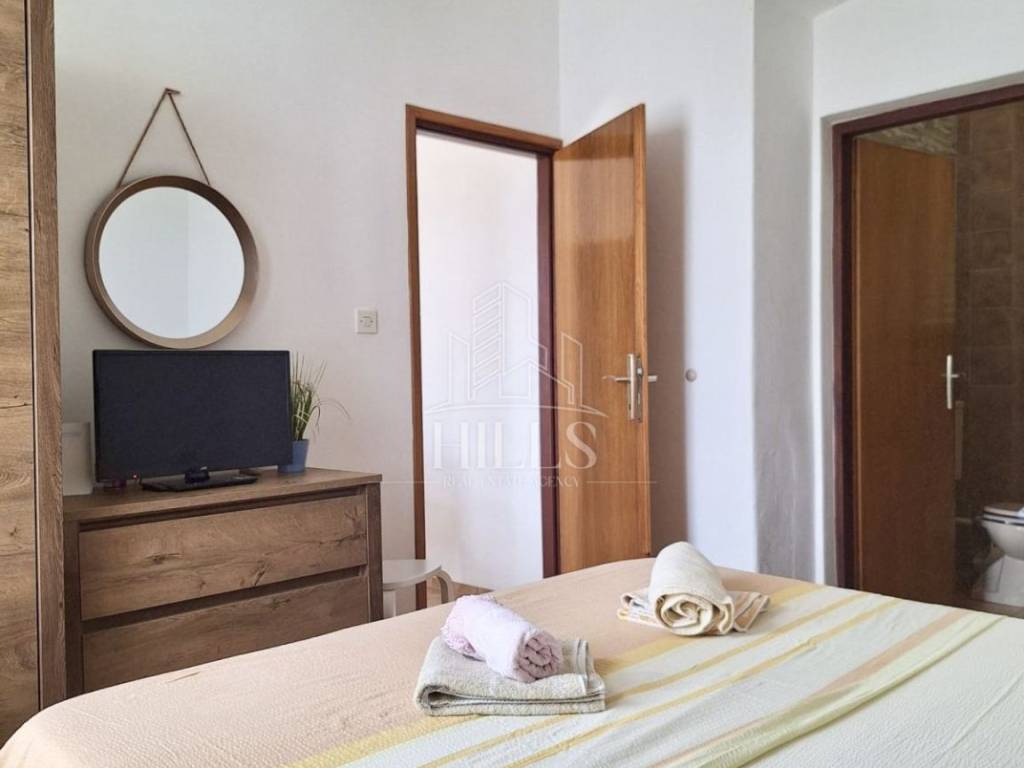 U blizini se nalaze svi potrebni sadržaji poput trgovine, banke, škole, doma zdravlja, ugositeljskih objekata te trajektne luke.