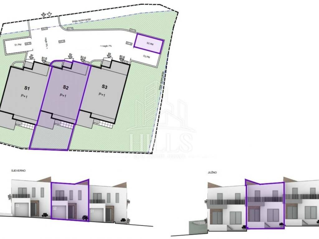 Projekt se sastoji od 3 kuće u nizu.