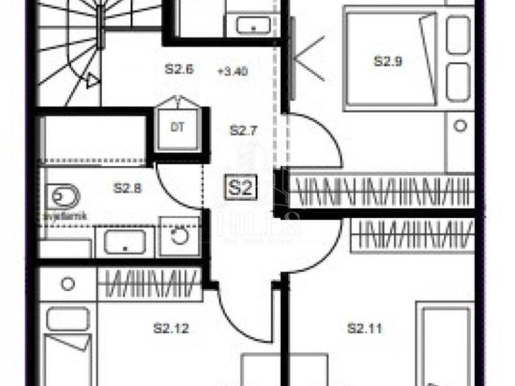 Kat: 3 spavaće sobe, 2 kupaonice, hodnik, degažman, stubište i 2 terase.