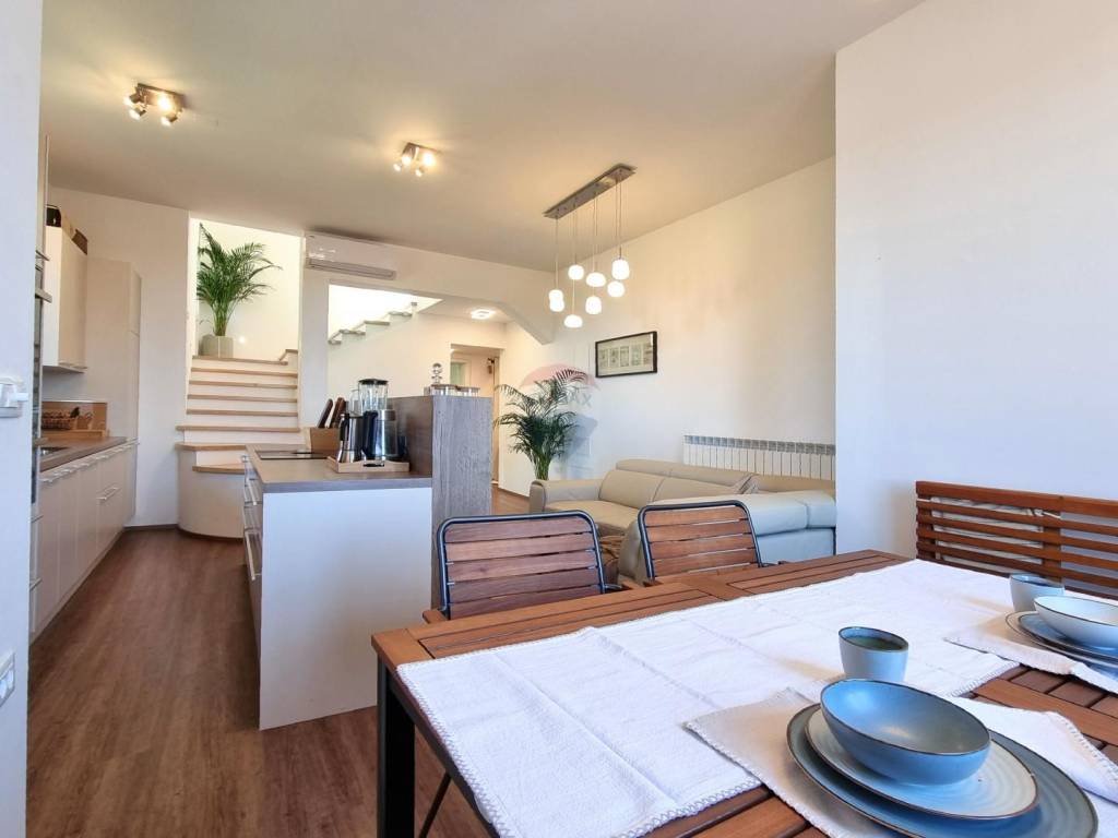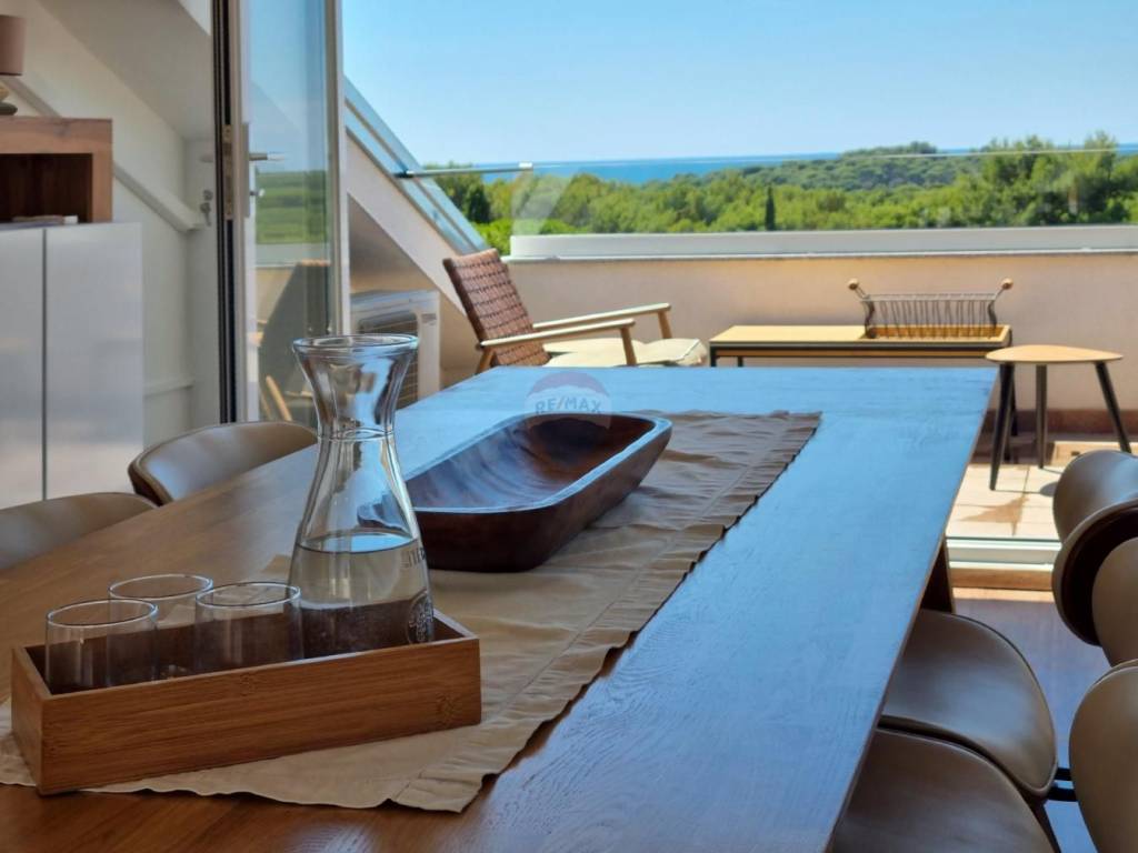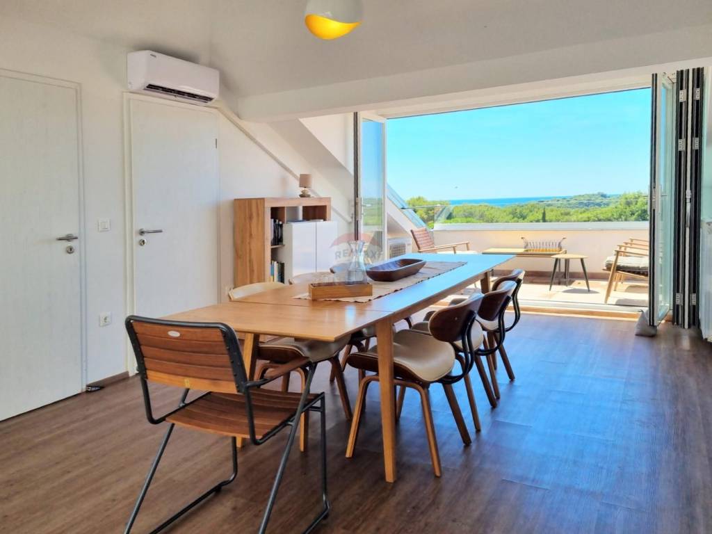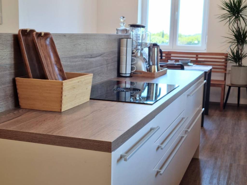 Die Wohnung ist nach Westen ausgerichtet und bietet einen wunderbaren freien Blick auf das Meer und die Inseln. Der Strand ist nur 200 Meter entfernt.
