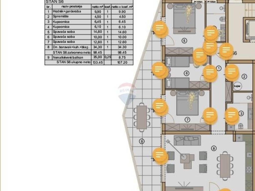 In dieser modern gestalteten und funktionalen Wohnung wurde auf Details und Komfort geachtet – hochwertige Isolierung, erstklassige Materialien – erstklassige Keramik in allen Räumen außer in den Schlafzimmern, wo Parkett verlegt wird. Die Heizung ist eine elektrische Fußbodenheizung im gesamten Apartment. Elektrische Rollläden.
