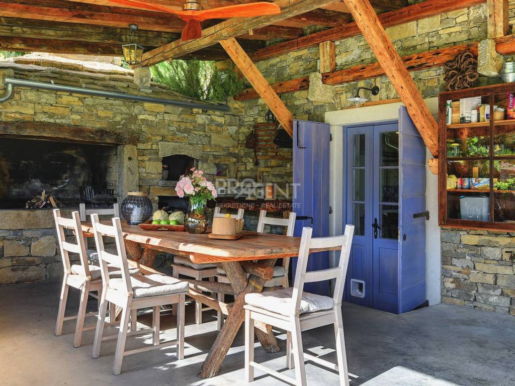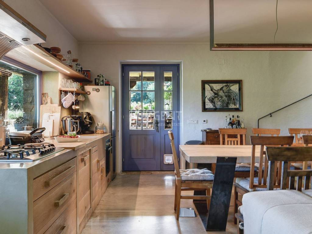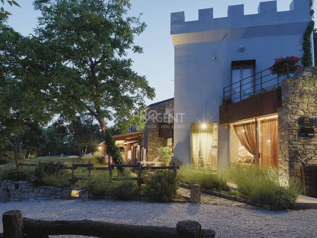 Rekonstruiertes altes Steinhaus mit angebautem Turm: Das Hauptgebäude vereint traditionelle istrische Architektur mit modernem Komfort. Die Gesamtfläche dieses Teils beträgt 229 m2.