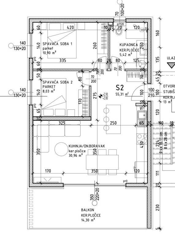 Trogir, Čiovo, ekskluzivna prodaja dvosobnog stana položenog na prvoj etaži manjeg stambenog objekta s ukupno pet stambenih jedinica.Stan je podijeljen na hodnik, kupaonicu, dvije spavaće sobe i dnevni dio ( kuhinja/ blagovaonica/ dnevni boravak ) s direktnim izlazom na natkriveni balkon površine 14, 30 m2.Zatvorena stambena površina iznosi 55, 31 m2.U cijenu je uključeno jedno vanjsko nenatkriveno parkirno mjesto.Gradnja objekta je krenula u listopadu, a useljenje je predviđeno u prvoj polovici 2027. godine.Izvrsna mikrolokacija, u blizini centra Trogira, te samo nekoliko koraka od uređene plaže.Za sve dodatne informacije, stojimo vam na raspolaganju.