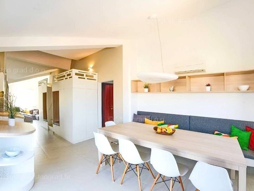 Aus dem hervorragenden Immobilienangebot der Agentur Stan Grad Immobilien sticht eine sehr schöne Wohnung in der hochwertigen und begehrten Küstendestination an der Adria, der Insel Krk, hervor. Diese Wohnung befindet sich in einer ausgezeichneten und selten verfügbaren Lage, ganz in der Nähe des Meeres und nur wenige Gehminuten vom Zentrum von Malinska und den wichtigsten Annehmlichkeiten des Lebens entfernt. In der Natur handelt es sich um eine sehr geräumige und komfortable einstöckige Wohnung. In einem hochwertigen Gebäude befindet sich die Wohnung im 2. Stock. Die Wohnung hat eine Gesamtfläche von ca. 118 m2. Dieser Bereich umfasst ein Wohnzimmer mit Zugang zur Terrasse, eine Küche mit Esszimmer mit Zugang zu einer weiteren Terrasse, 4 Schlafzimmer, 2 Badezimmer und einen Abstellraum. Die Immobilie ist komplett mit modernen Möbeln und moderner und hochwertiger technischer Ausstattung ausgestattet. Der Eigentümer der Wohnung kann alle Gemeinschaftsteile und Räume des Grundstücks ungehindert nutzen. Zwei Autos können bequem im angrenzenden Gartenteil des beschriebenen Grundstücks geparkt werden. Zusätzlich zu den bisherigen Merkmalen ist das Gebäude perfekt ausgerichtet, sodass die Wohnung einen wunderbaren Blick auf das Meer und die Küste bietet. Die betreffende Wohnung ist Eigentum einer Körperschaftsschuld und unterliegt bei der Eigentumsübertragung der Berechnung der Immobilienumsatzsteuer in Höhe von 3 %. Der Eigentümer der Wohnung garantiert dem Käufer eine schnelle Übertragung des Verfügungsrechts über die Immobilie. Kontaktieren Sie uns persönlich oder telefonisch, wir werden versuchen, alle Ihre Fragen zu beantworten. Wenn Sie sich für uns entscheiden, hilft Ihnen das Expertenteam des Maklerbüros Stan Grad Immobilien gerne dabei, das Eigentum an der Immobilie und die Rechnung für Versorgungsanschlüsse auf Ihren Namen zu übertragen.