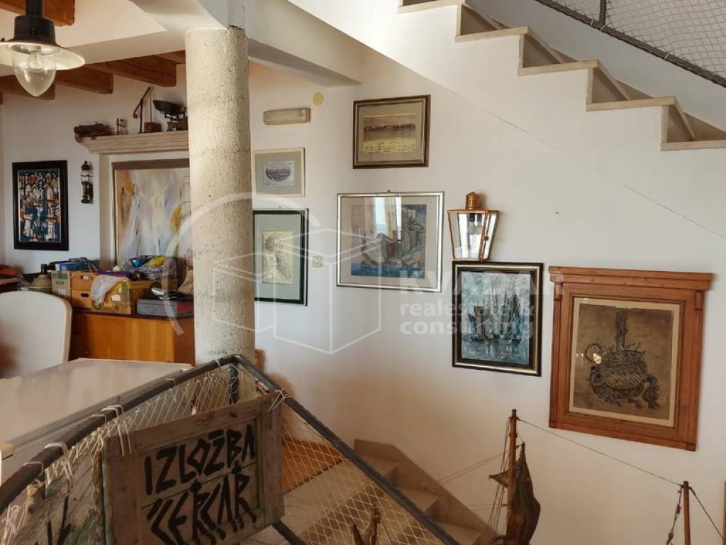Kuća raspolaže s prostorom poznatog restorana na otoku, koji se nalazi u prizemlju i na katu kuće. Restoran je opremljen sa svim potrebnim za poslovanje, a ambijent je uređen u autentičnom stilu lokacije. Opremljena je sa septičkom jamom i cisternama za vodu.