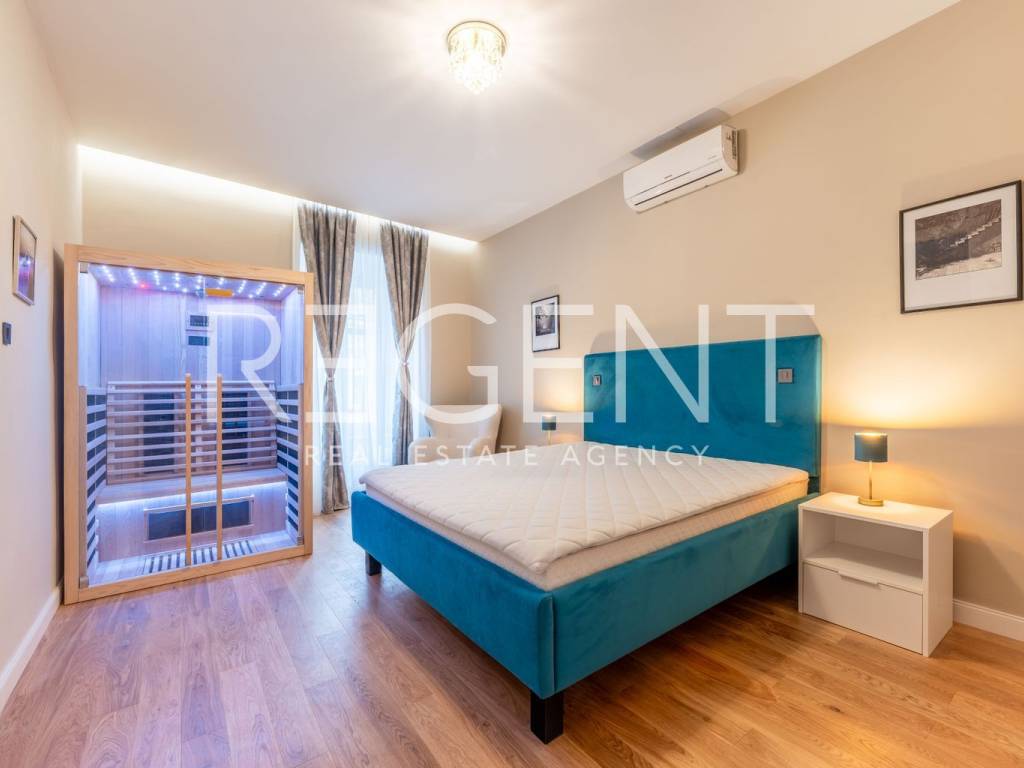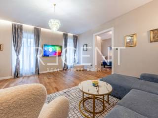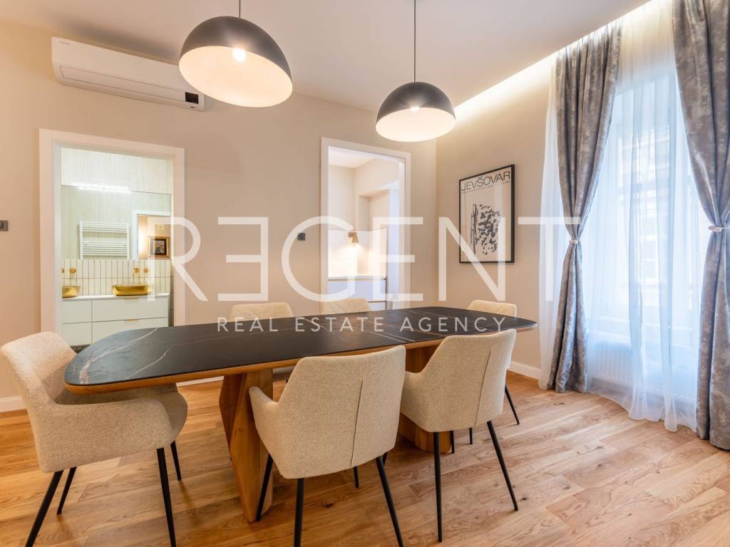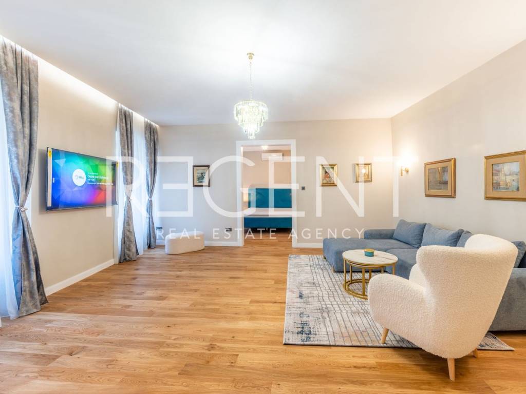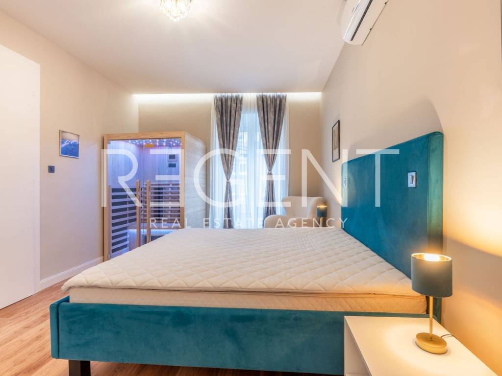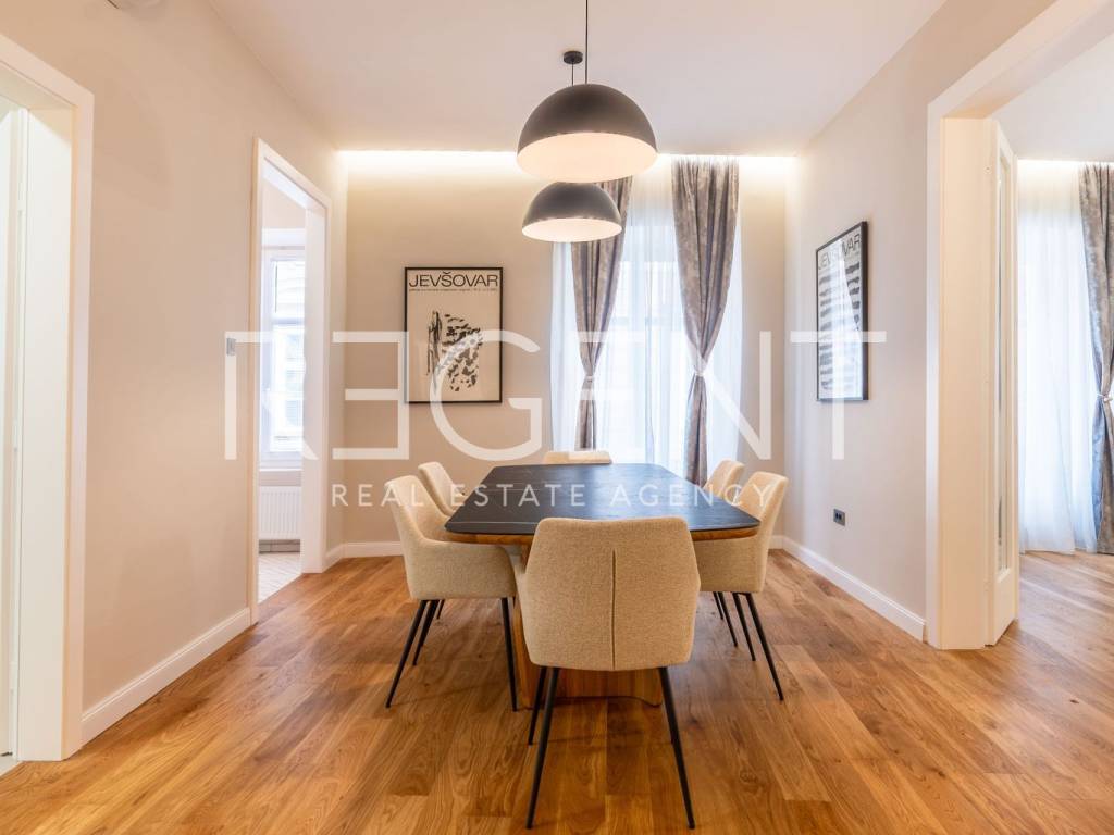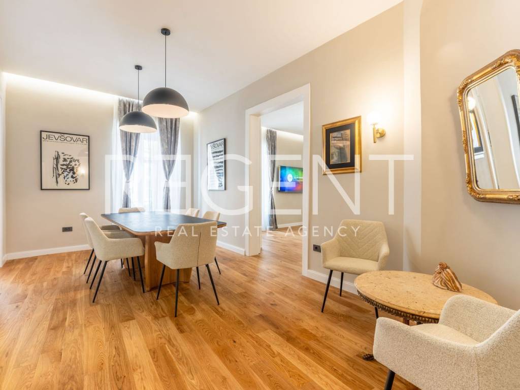 Im Herzen von Zagreb, nur eine Gehminute vom Ban-Jelačić-Platz entfernt, befindet sich und wird diese äußerst elegante und luxuriös eingerichtete Wohnung mit einer Fläche von 92 m² vermietet. Sie befindet sich im ersten Stock eines wunderschönen, sorgfältig gepflegten Gebäudes, das den Charme historischer Architektur mit dem Komfort modernen Wohnens verbindet. Die Wohnung wurde komplett renoviert, wobei besonderes Augenmerk auf die Qualität der Materialien, die Innenarchitektur und die Schaffung eines Raumes gelegt wurde, der Ruhe, Komfort und einen anspruchsvollen Lebensstil bietet. Beim Betreten der Wohnung empfängt Sie ein geräumiges Wohnzimmer, das nahtlos in die modern eingerichtete Küche übergeht und einen harmonischen und offenen Wohnraum schafft. Ein besonders beeindruckender Teil der Wohnung ist das luxuriöse Schlafzimmer mit einer eingebauten Sauna, perfekt für Momente der Entspannung nach einem dynamischen Tag im Stadtzentrum. Das Badezimmer ist elegant eingerichtet und mit hochwertigen Sanitäranlagen ausgestattet, was den Komfort zusätzlich erhöht. Die Wohnung ist komplett mit sorgfältig ausgewählten Möbeln und Details ausgestattet, die ein Gefühl von Harmonie und Wärme erzeugen. Einer der größten Vorteile dieser Immobilie ist ein privater Parkplatz im Innenhof des Gebäudes, der im Zentrum von Zagreb äußerst wertvoll und schwer zu bekommen ist. Diese Immobilie stellt die perfekte Kombination aus erstklassiger Lage, luxuriöser Einrichtung und voller Funktionalität dar,