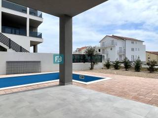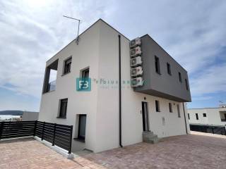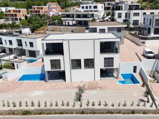 € 495.000Mehrfamilienhaus Vodice, VodiceVODICE – Modernes Doppelhaus mit Pool und Garten in Hanglage mit Panoramablick aufs Meer zu verkaufen! Das neu erbaute Doppelhaus befindet sich im neuen Wohngebiet von Vodice. Nur 700 m vom Strand und 900 m vom Stadtzentrum entfernt, bietet Ihnen diese Immobilie Ruhe und Erholung abseits des Stadttrubels und ist dennoch nur wenige Minuten von allen Annehmlichkeiten Vodices entfernt. Ein besonderer Vorteil ist die dreigeschossige Aufteilung, die für mehr Privatsphäre und großzügigen Wohnraum sorgt. Das Haus verfügt über eine schöne Terrasse, ideal zum Entspannen und Genießen, sowie einen Panor