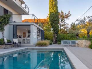 € 670.000Einfamilienhaus 150 m², neu, DobrinjExklusiv nur bei uns im Angebot! Neue freistehende Villa in ruhiger Lage mit Garten und Pool im Ort Kras. Auf einem Grundstück von 514 m² befindet sich diese neue, charmante Villa mit einem Hauch von rustikalem Stil – umgeben von Ruhe und Grün. Im Erdgeschoss befinden sich ein Flur, ein Gäste-WC, ein Schlafzimmer mit eigenem Bad sowie ein großzügiger offener Wohnbereich mit Küche und Esszimmer, der auf die Loggia und den großen Garten mit Pool führt – mit viel Privatsphäre. Im Obergeschoss befindet sich ein Schlafzimmer mit eigenem Bad, zwei weitere Schlafzimmer mit Zugang zur Terrasse mit Me