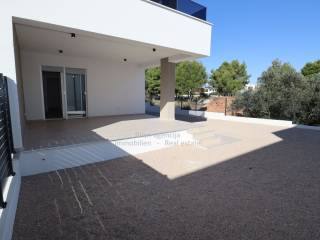 € 900.000Einfamilienhaus 200 m², VodiceEine neue wirklich moderne Villa zum Verkauf mit einem Pool in der Nähe des Meeres, Srima-Vodice. Es befindet sich in ruhiger Lage. Die Villa selbst besteht aus einem Erdgeschoss und einem Obergeschoss. Im Erdgeschoss befinden sich ein Schlafzimmer mit Bad und ein Wohnzimmer mit Esszimmer und Küche in einer Einheit. Vom Wohnzimmer gibt es einen Ausgang zur Liegewiese mit Außenpool und einem schön angelegten Garten. Die Innentreppe führt in den ersten Stock, wo sich drei weitere Schlafzimmer, zwei Badezimmer und zwei überdachte Terrassen befinden. Die Villa selbst wird möbliert verkauft. Die Vi