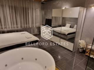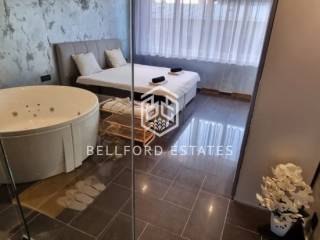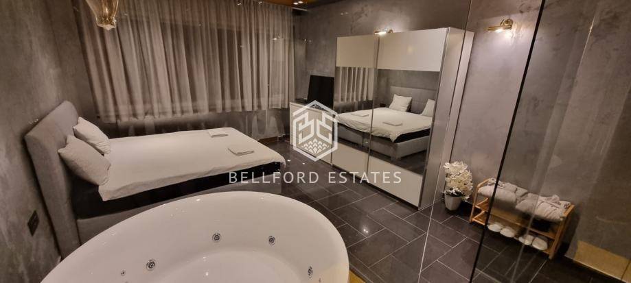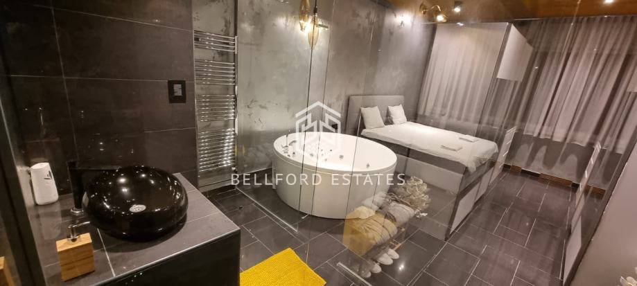 - U spavaćoj sobi nalazi se veliki hotelski krevet, a prostor dodatno naglašava velika hidromasažna kada integrirana u sobu.