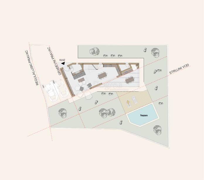 Izdana je građevinska dozvola za kuću katnicu neto površine 115 m2 koja se sastoji od 3 spavaće sobe, 3 kupaonice, te open space dnevnog boravka spojenim s blagovaonicom i kuhinjom. U dvorištu je planiran bazen od 25 m2, prostrana terasa, zelena površina i 2 parkirna mjesta.