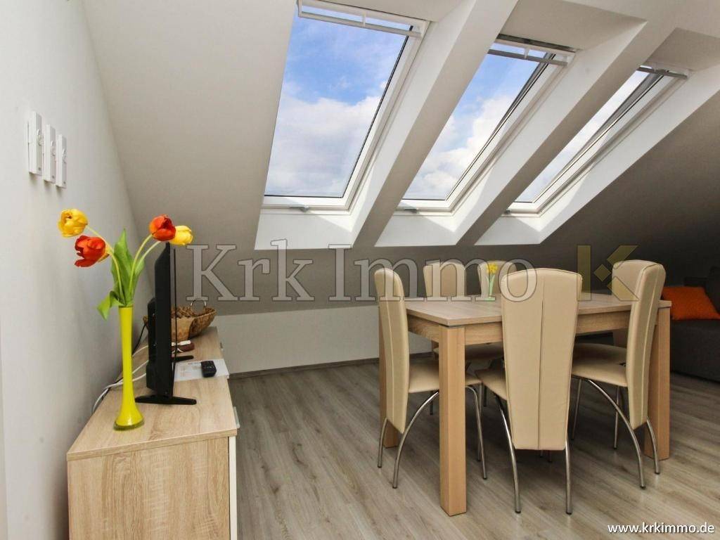 The apartment in the high attic offers two bedrooms, a bathroom, a kitchen, a dining room, a living room and a beautiful view of the sea.