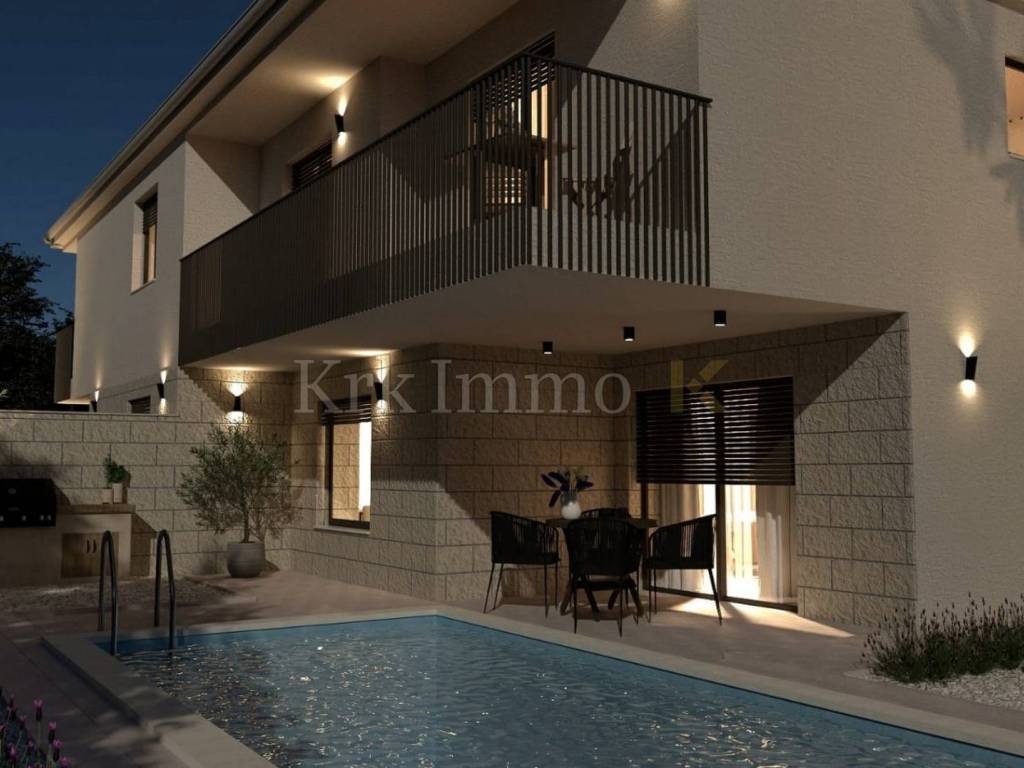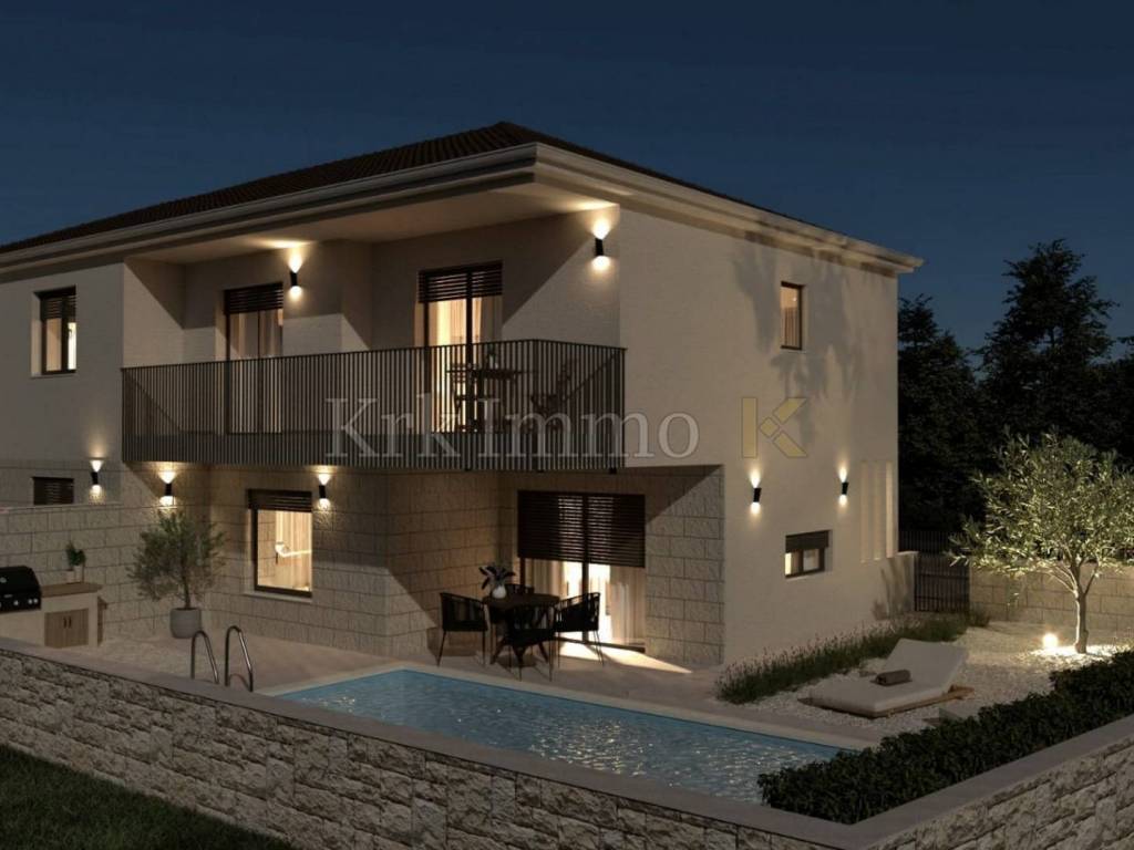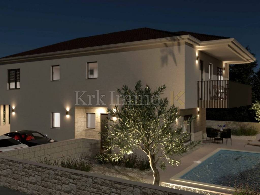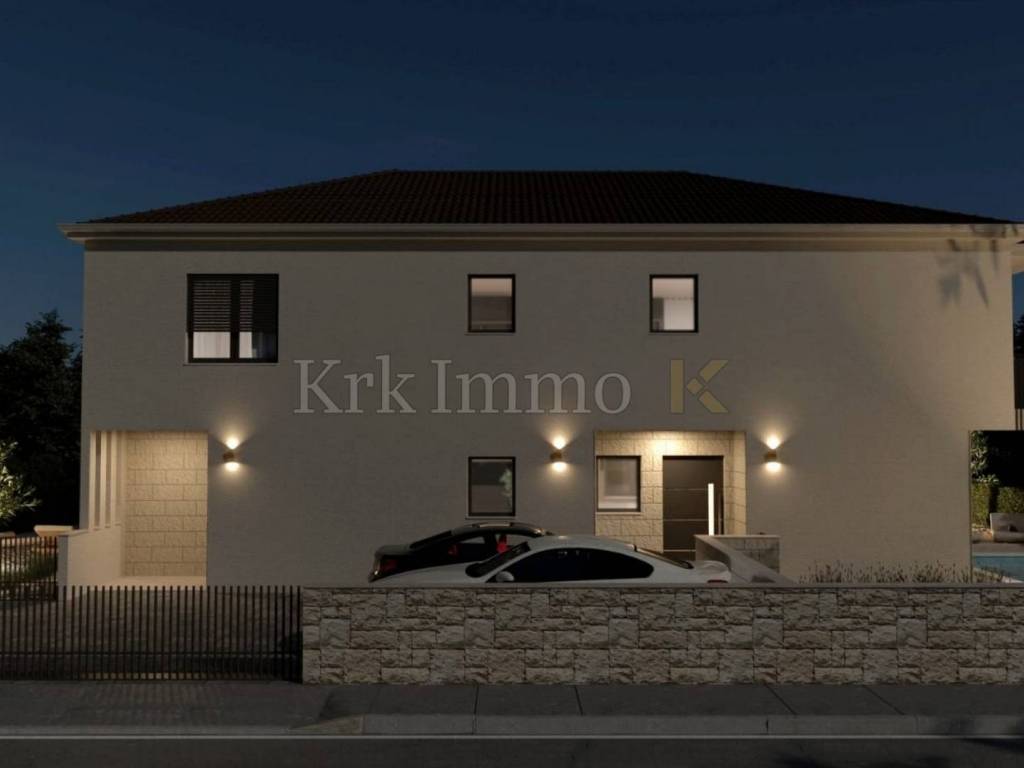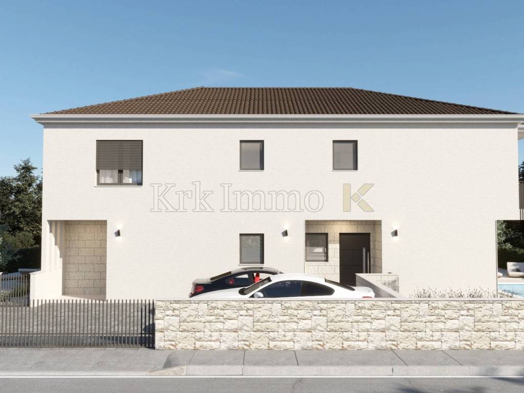 For sale is a ​​new, modern semi-detached house with swimming pool, located in a quiet environment near Malinska, ideal for family life or as an investment for tourist rental. This spacious property, with a total area of ​​111 m², is spread over two floors and offers top comfort and modern equipment, and the proximity to the sea provides additional value.