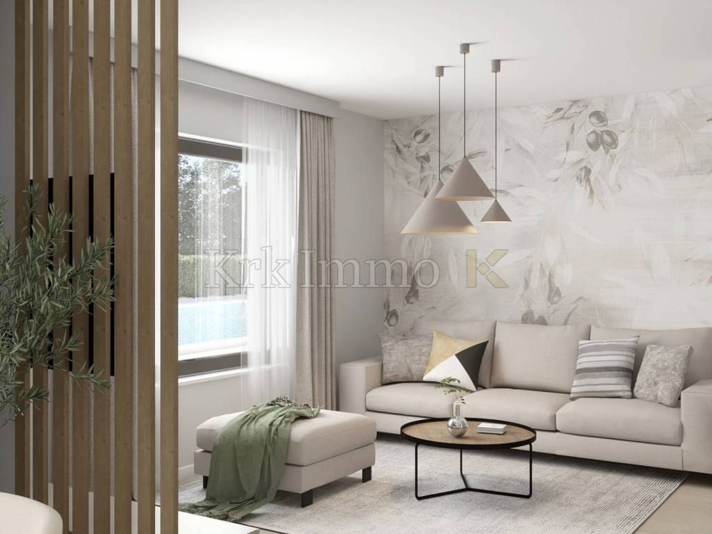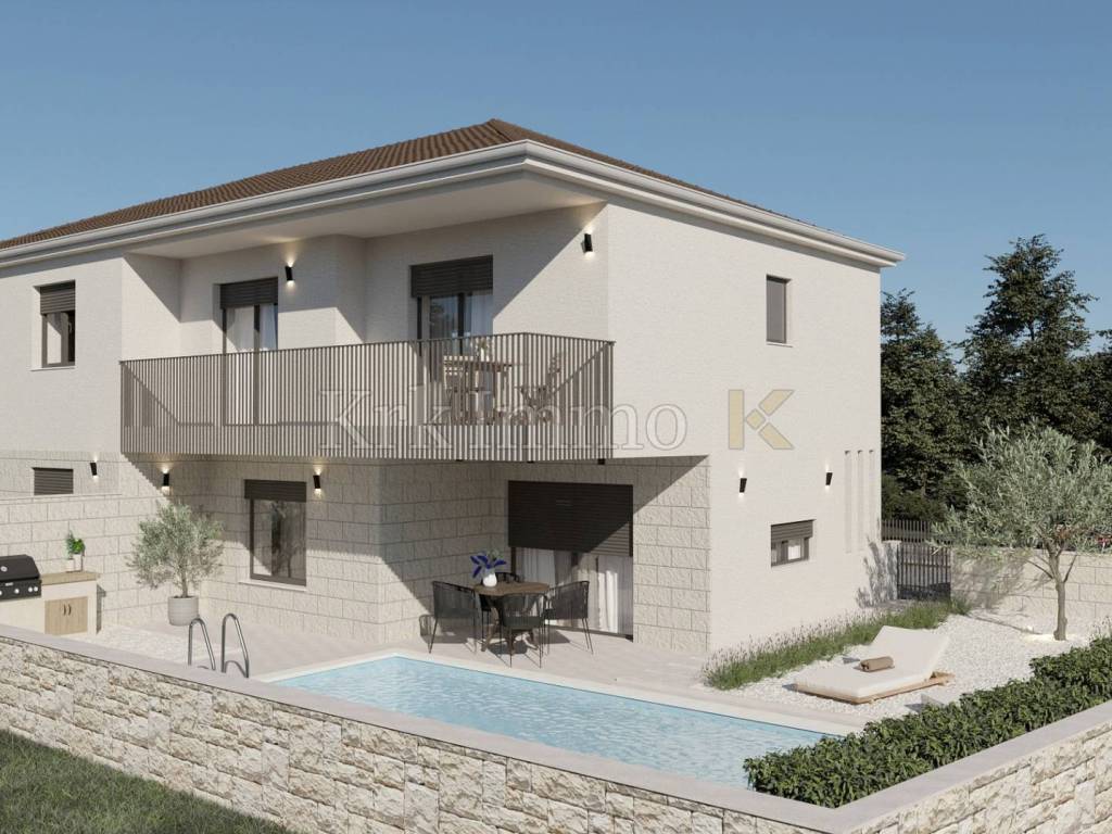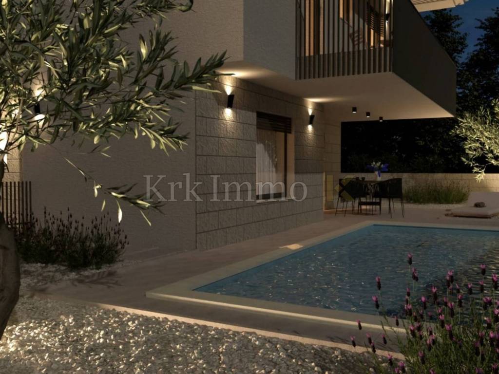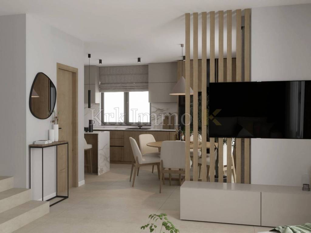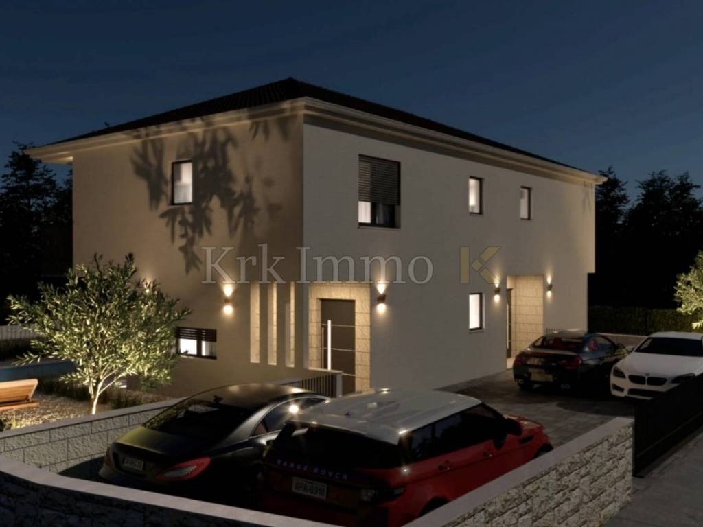 For sale is a ​​new, modern semi-detached house with swimming pool, located in a quiet environment near Malinska, ideal for family life or as an investment for tourist rental. This spacious property, with a total area of ​​111 m², is spread over two floors and offers top comfort and modern equipment, and the proximity to the sea provides additional value.