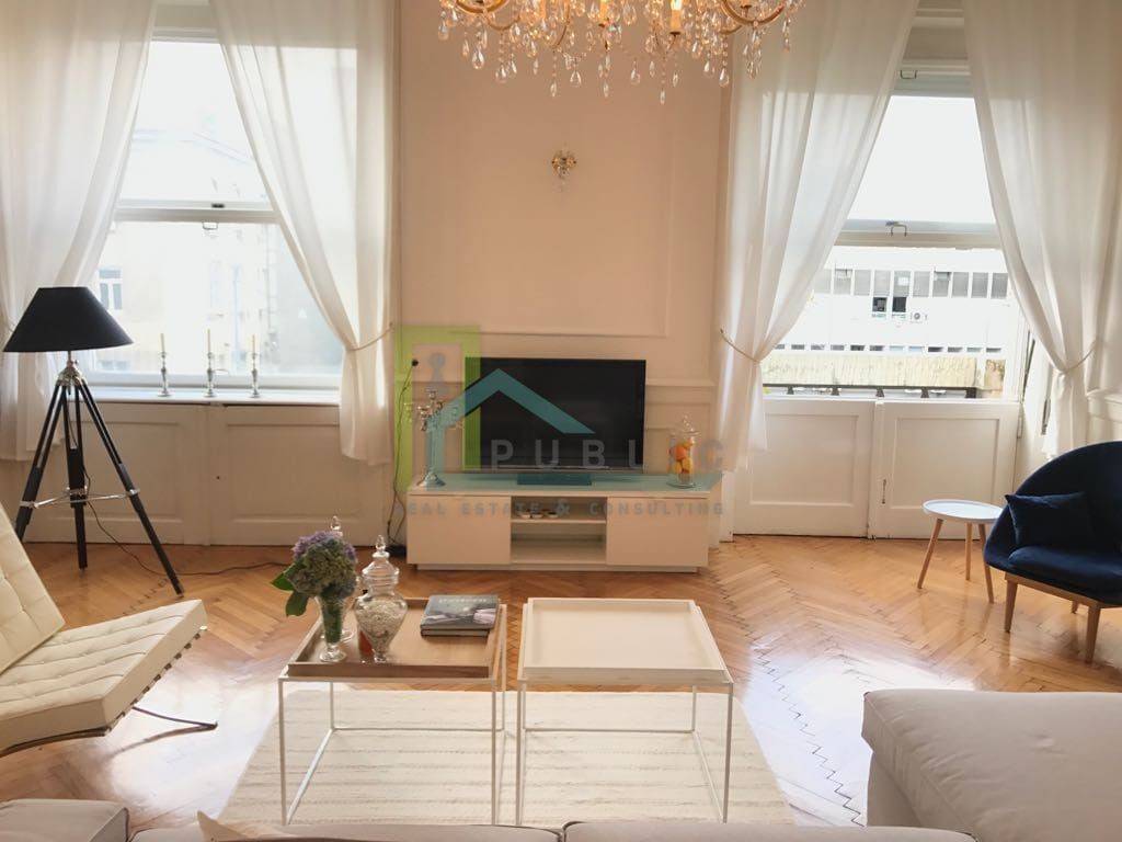 Luxury newly renovated two-bedroom apartment 130 m2 + balcony 12 m2 for rent on the second floor of a building with an elevator,  Zagreb Center - Kralja Držislava.