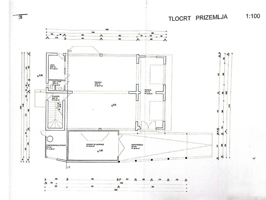 Στο ισόγειο υπάρχει ένας επαγγελματικός χώρος που αποτελείται από εργαστήριο, γραφείο, εγκαταστάσεις υγιεινής και λεβητοστάσιο αερίου, το οποίο χρησιμοποιείται ως βαφείο αυτοκινήτων. Το ύψος των τοίχων είναι 3,80 μ.