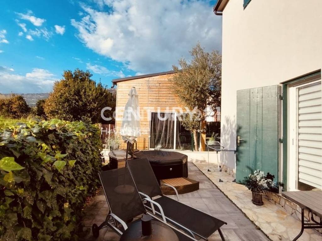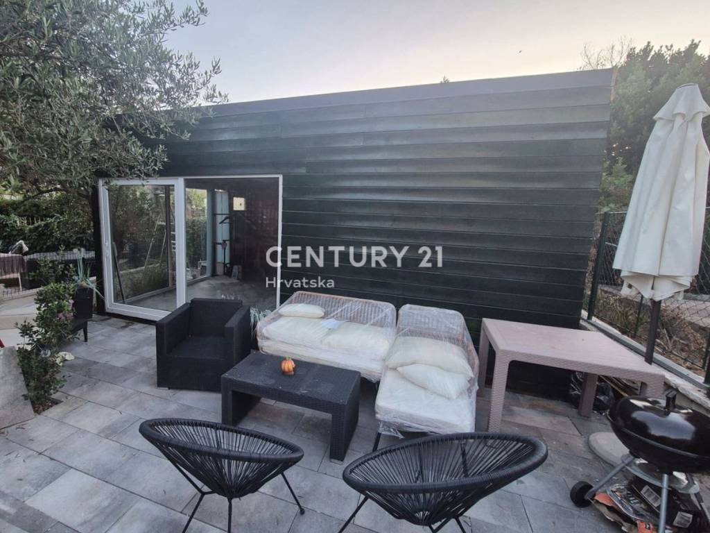 Okućnica je uređena i savršena za opuštanje. Uključuje dva vrtna prostora, vanjski jacuzzi, roštilj, ležaljke te montažnu drvenu kuću površine 25 četvornih metara koja trenutno služi kao kućna teretana. Po želji, ovaj objekt se može prenamijeniti ili ukloniti i na njegovom mjestu izgraditi bazen.