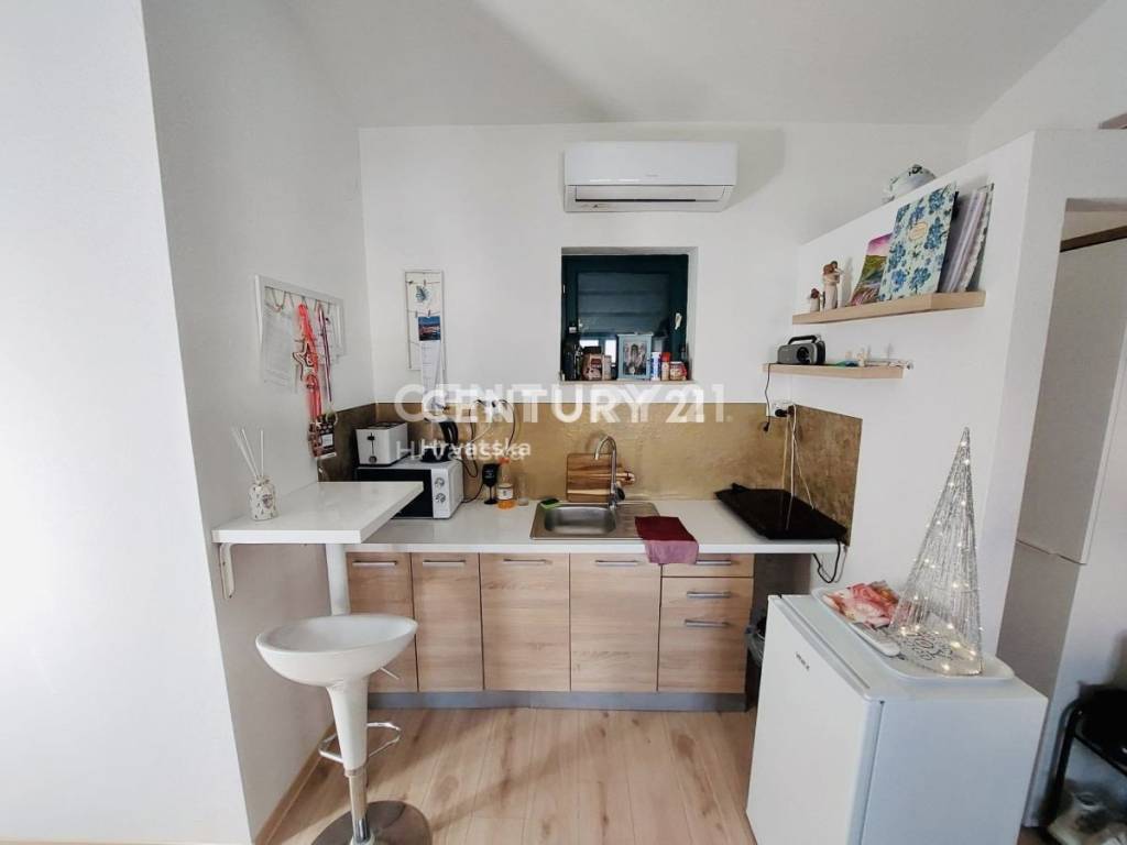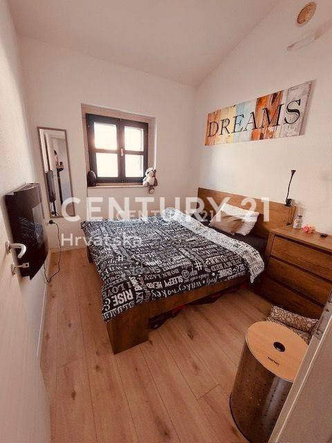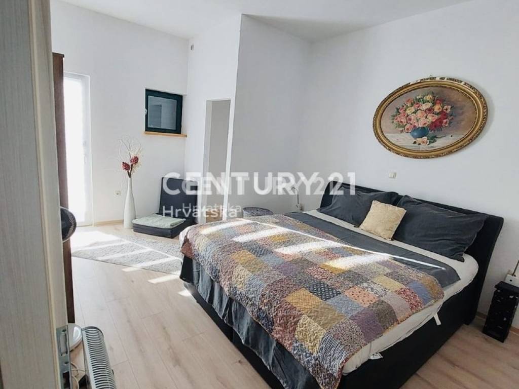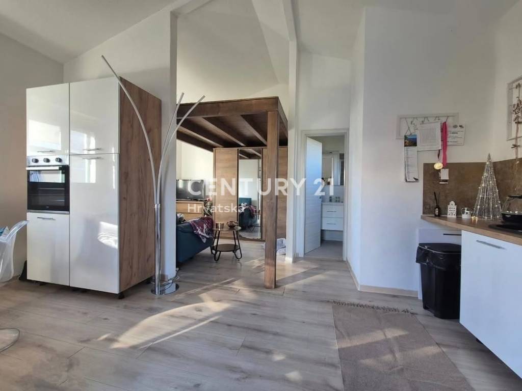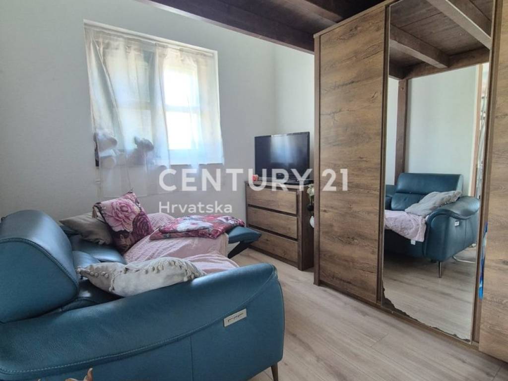 Na prvom katu nalazi se stan površine 35 četvornih metara koji uključuje dnevni boravak s kuhinjom, spavaću sobu i kupaonicu. Odvojeni ulaz pruža dodatnu samostalnost ovoj stambenoj jedinici.