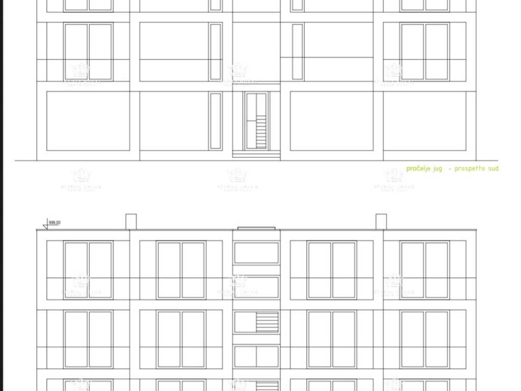 U Murinama se prodaje gradjevinska parcela od 900 kvadrata sa projektom i gradjevinskom dozvolom za izgradnju 6 stambenih jedinica i 9 parkirnih mjesta.
