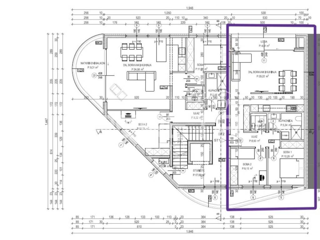 An exceptionally modern apartment is offered, located in a residential and commercial building in the very center of Tar, in an attractive and quiet location with a beautiful, open sea view. The apartment is part of a high-quality designed new building that includes a total of 12 residential units and two commercial spaces, distributed over four floors. The building is equipped with a silent Metus elevator, while the common areas are finished with top-quality ceramics and stone.The apartment, measuring $\text{67.57 m}^2$, is carefully designed for maximum comfort. It consists of two bedrooms, a spacious living room with a kitchen and dining area, a bathroom, an additional toilet, and a covered terrace/loggia. The apartment also includes two private parking spaces. High-quality PVC joinery with three-layer IZO glass, stone sills, and mosquito nets is installed. Security is ensured by anti-burglary and fire-resistant entrance doors with a video intercom. For ultimate comfort, underfloor heating is installed throughout the apartment, while cooling is provided by air conditioning units in every room. The buyer has the option to choose first-class ceramics from renowned manufacturers, according to their own preferences.This property is being sold on a "turnkey" basis (excluding furniture). The advertised price includes VAT, as the seller is a legal entity, which means the buyer is exempt from paying real estate transfer tax (3%). Payment by phases of construction is open to negotiation. Note: The published images are for informational purposes only and serve as a representation of the standard and quality of furnishings.This apartment represents a perfect blend of a contemporary lifestyle, top-quality construction, and an exceptional location, making it an excellent choice for those seeking a luxurious and functional home or a secure investment.For all additional information and to arrange a project presentation, please contact us!