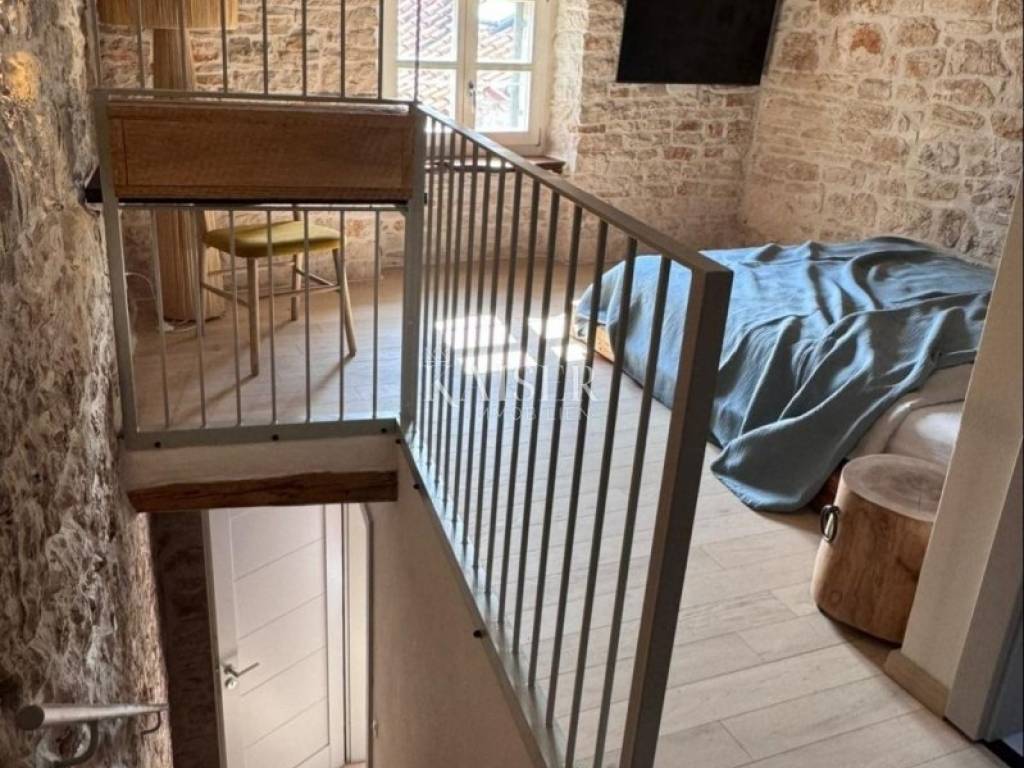KAISER IMMOBILIEN PRESENTS TO YOU A TRADITIONAL RENOVATED ISTRIAN HOUSE ON THREE FLOORS Rovinj is one of the most magical Istrian towns, known for its picturesque old town, narrow streets and romantic coast under the bell tower of St. Euphemia. Nearby is Bale, a quiet and stone Istrian town that exudes authenticity, an artistic atmosphere and untouched nature. Together, Rovinj and Bale create a harmonious blend of lively coastal charm and a quiet, traditional Istrian atmosphere. This beautiful old authentic Istrian house exudes a special charm, combining the traditional spirit of Istria with refined, functional design and top-quality furniture. It captivates at first glance with its authentic stone facade and warmth that emanates from every detail, creating the atmosphere of a true Istrian home, renovated with great care and respect for the past. On the ground floor there is an elegant Nolte kitchen connected to the dining room, a space that is both rustic and modern, enriched with warm colors and natural materials. On this level there is also a practical toilet and a small pantry, perfect for organizing everyday necessities. On the first floor there is a comfortable living room, filled with natural light and details that emphasize the character of an old Istrian house – wooden beams, quality materials and a pleasant atmosphere that invites relaxation. The next floor hides the first bedroom, connected to an elegantly decorated bathroom with toilet. This floor exudes intimacy and warmth, perfect for a peaceful night's rest. On the upper floor there is a second bedroom, also with its own bathroom, and an additional work corner, ideal for those who need a quiet place for creativity or work. This space especially radiates comfort thanks to carefully selected materials and furniture that fit perfectly into the antique frame of the house. When decorating the house, the goal was to retain the best of the spirit of old indigenous Istrian architecture and harmoniously combine it with modern functionality and high-quality furniture. The result is a home that exudes character, elegance and warmth, a perfect combination of tradition and modern comfort.