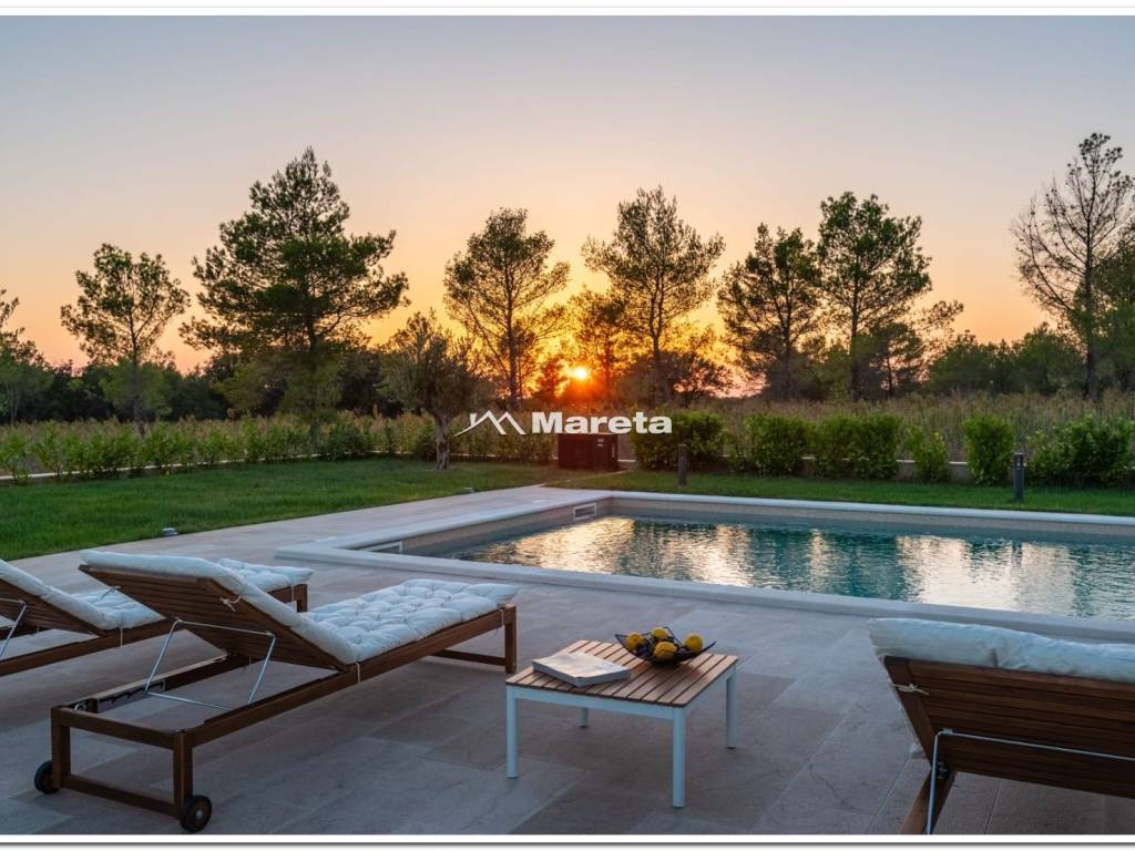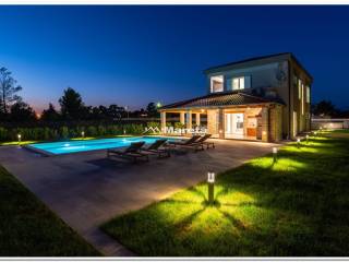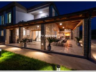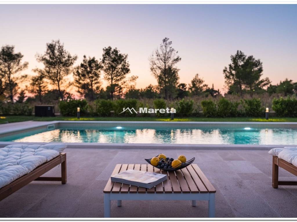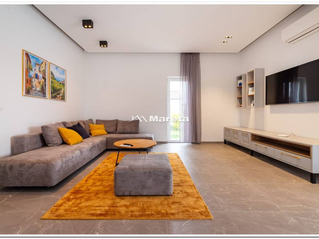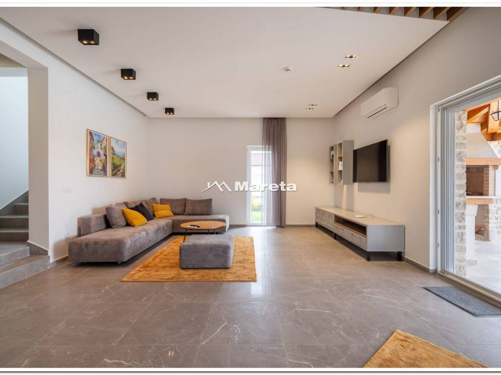 Uređena okućnica odiše mediteranskim ambijentom, s automatskim navodnjavanjem i diskretnom ambijentalnom rasvjetom koja naglašava arhitekturu objekta.
