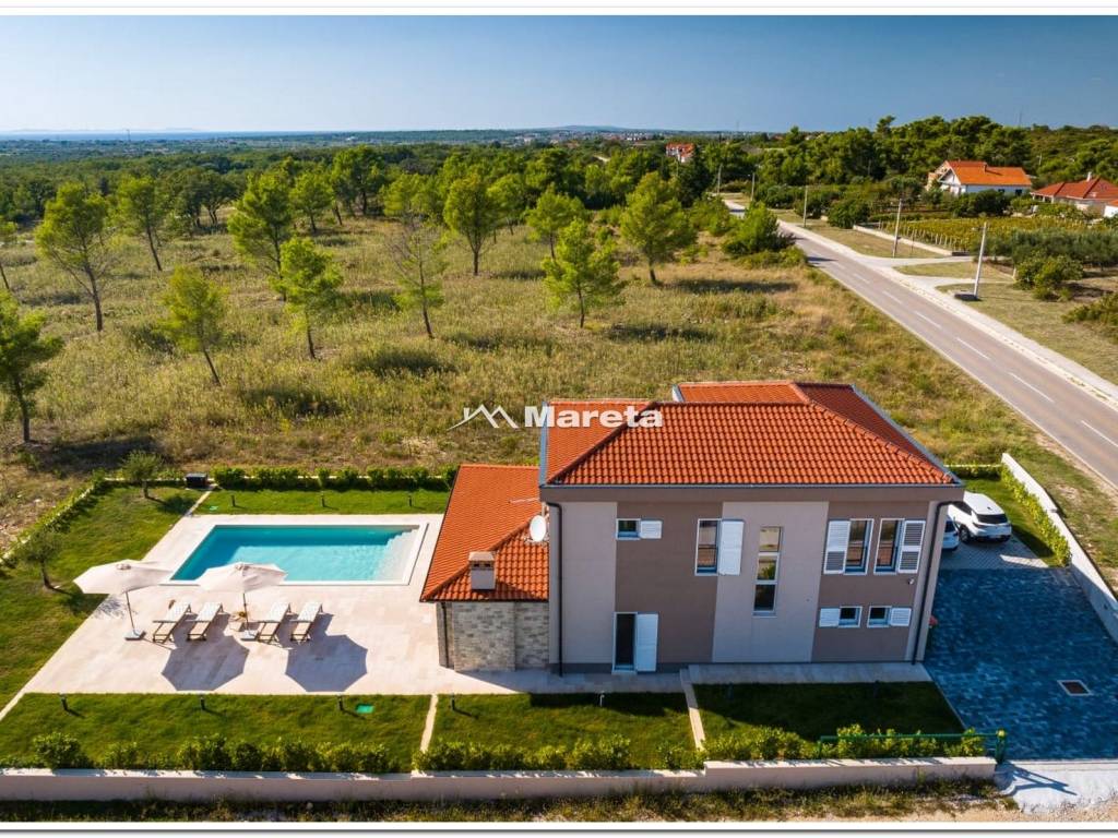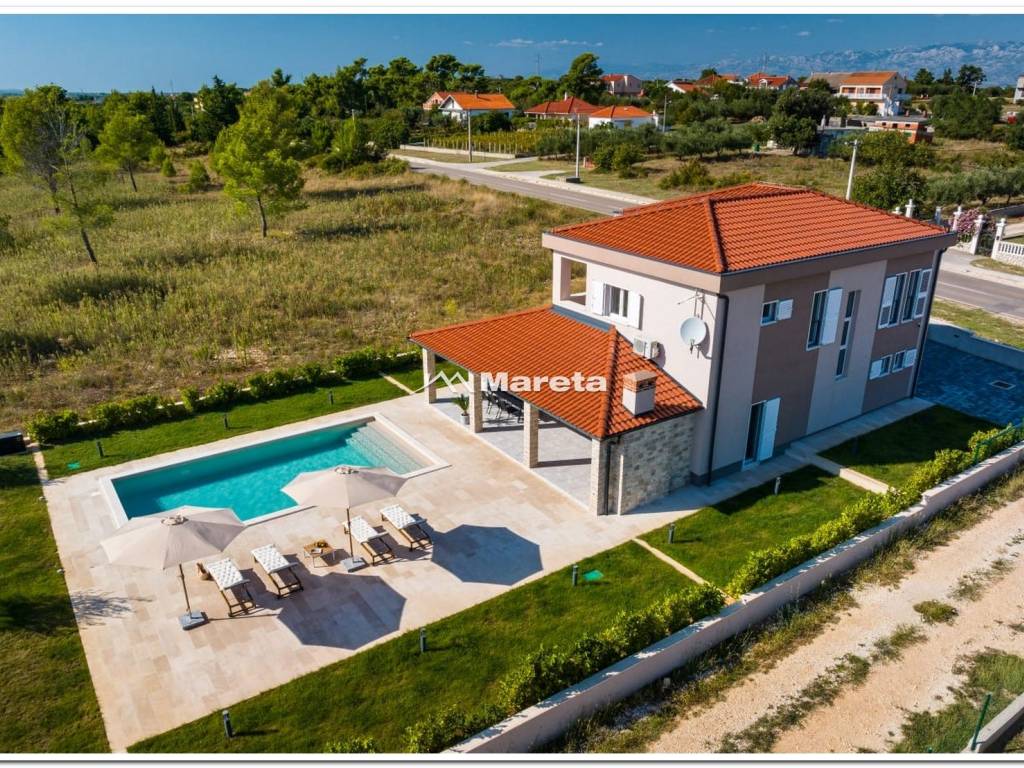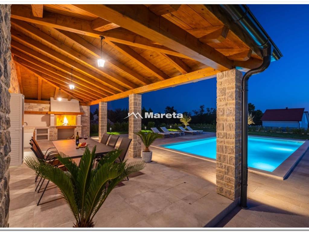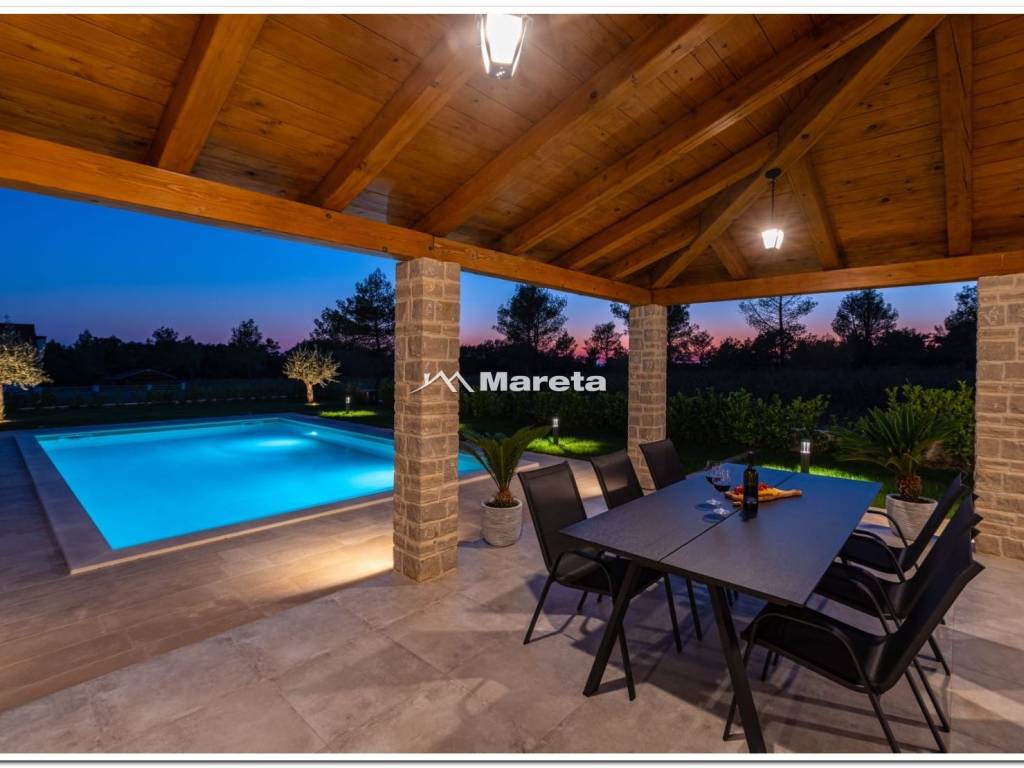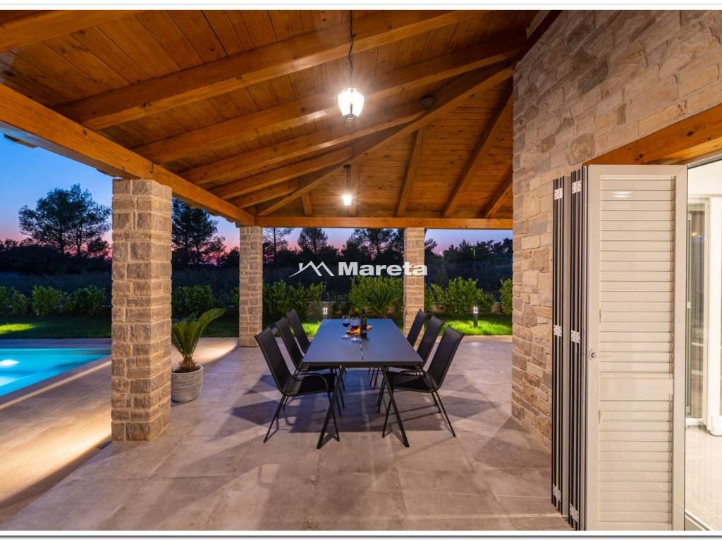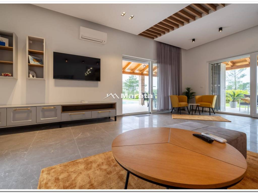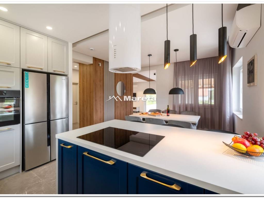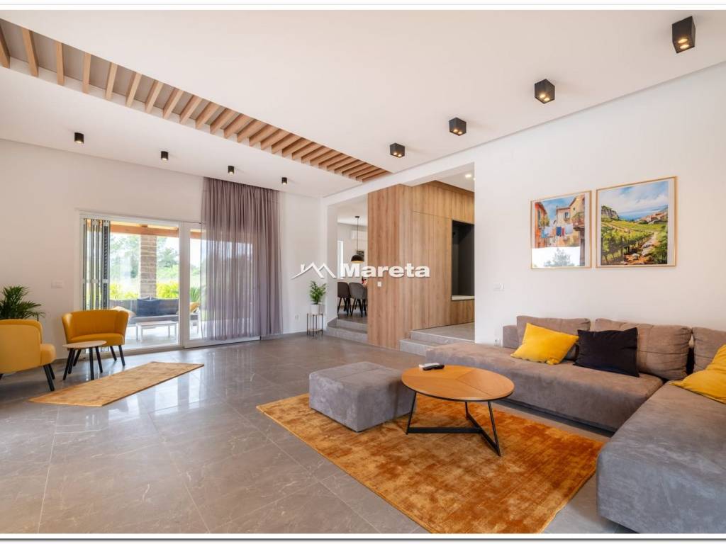 Prizemlje: ulazni hodnik, gostinjski WC, vešeraj i dodatna ostava, moderna kuhinja otvorenog koncepta povezana s blagovaonicom i dnevnim boravkom, izlaz na veliku natkrivenu terasu idealnu za boravak na otvorenom
