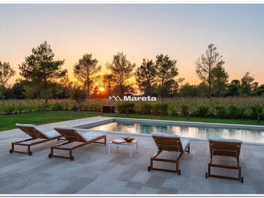 Središnje mjesto zauzima grijani bazen 9 × 5 m, okružen velikim sunčalištem koje pruža potpunu privatnost.