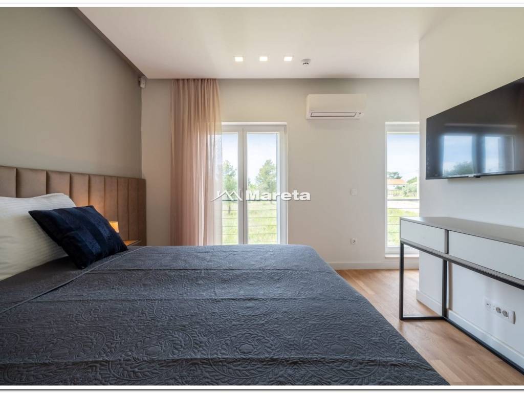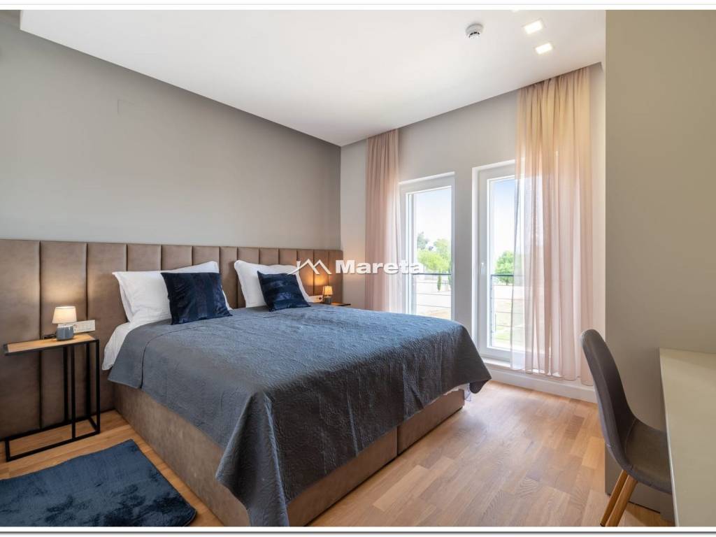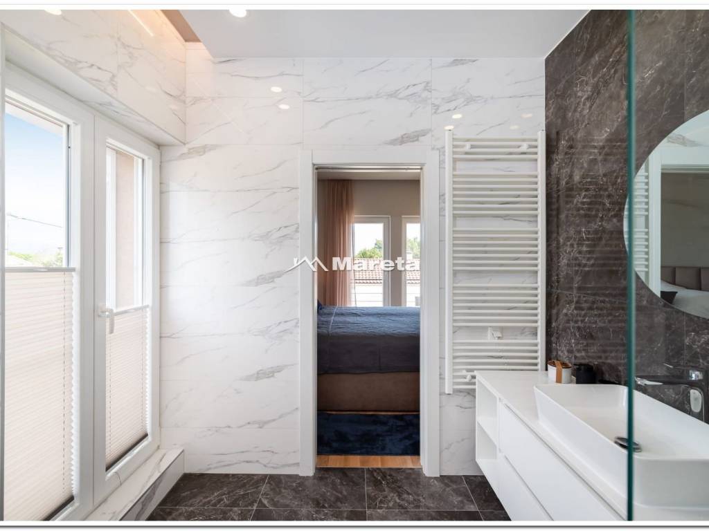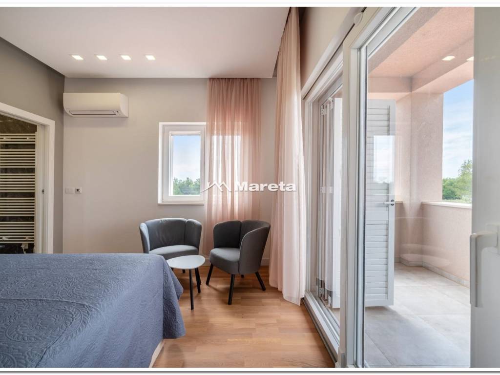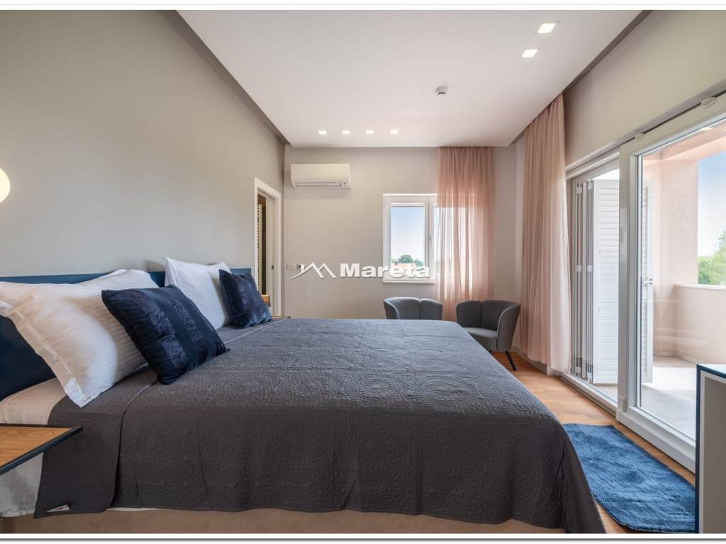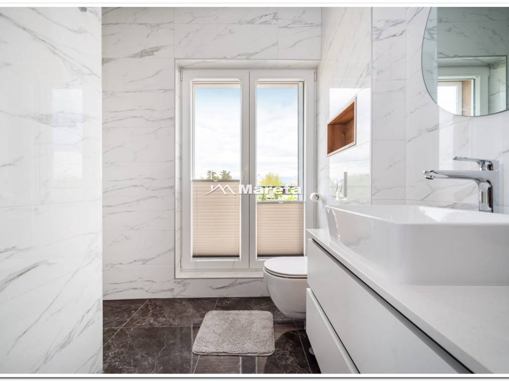 Kat: hodnik, tri prostrane spavaće sobe, tri elegantno uređene kupaonice, garderoba, natkrivena terasa s privatnim kutkom za odmor