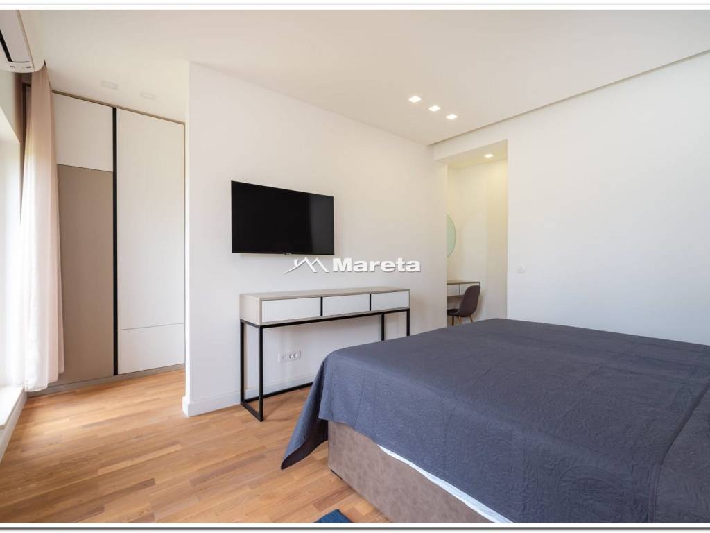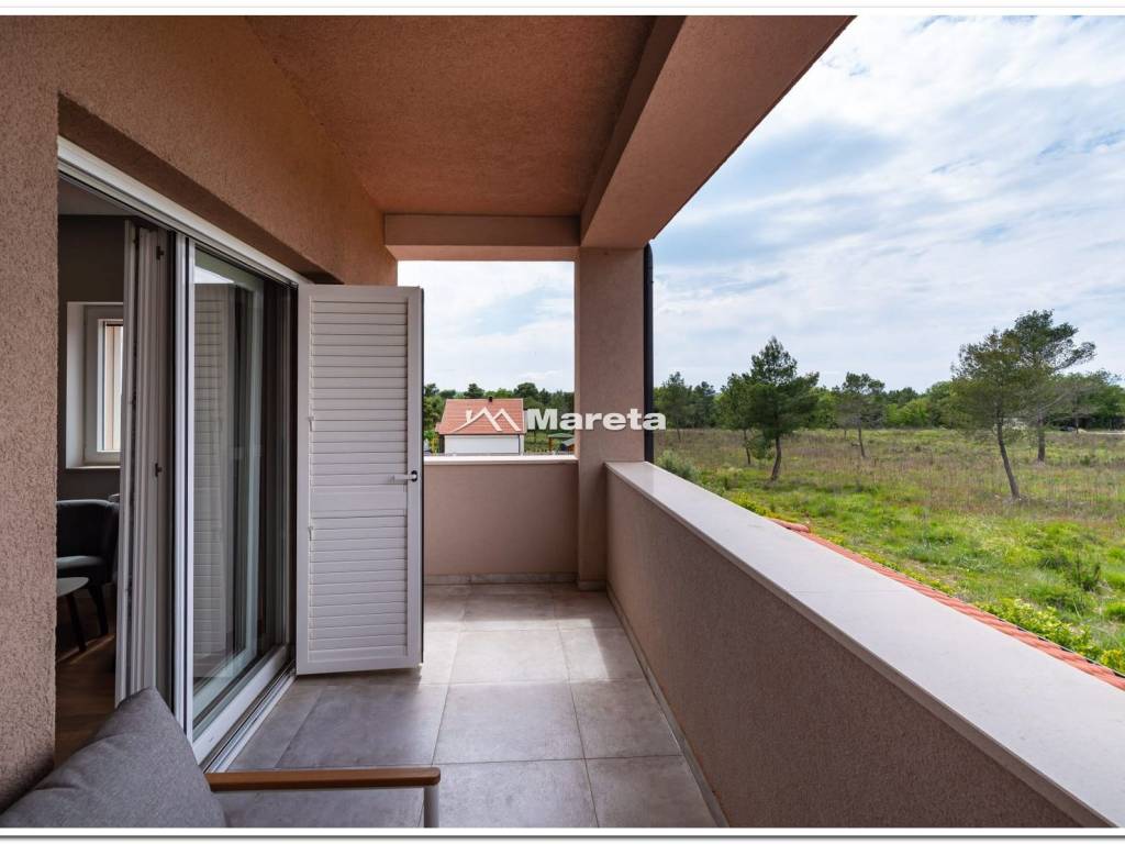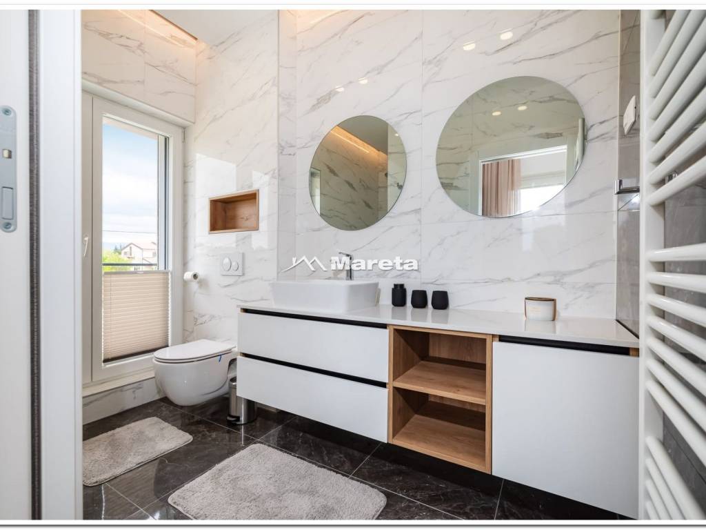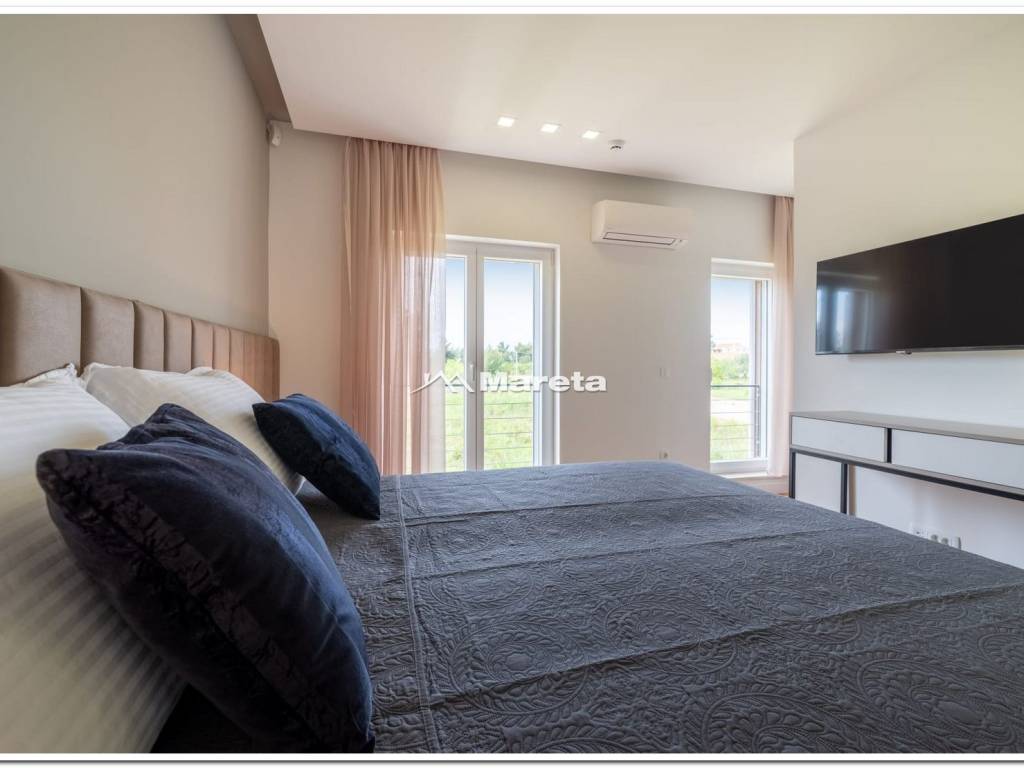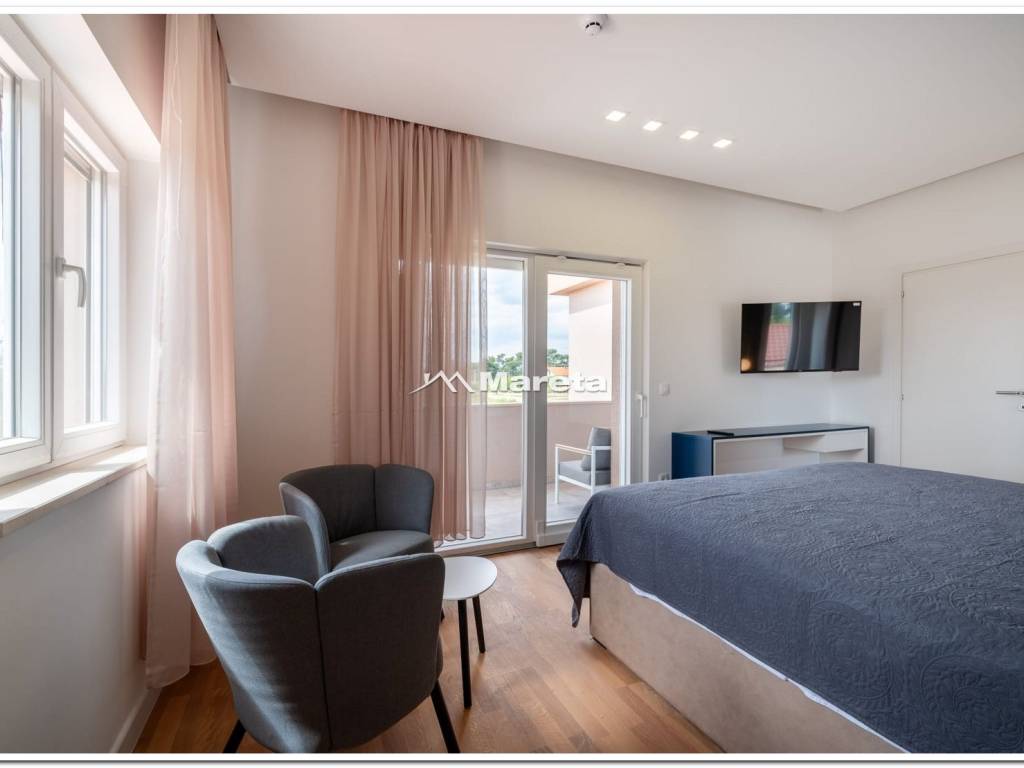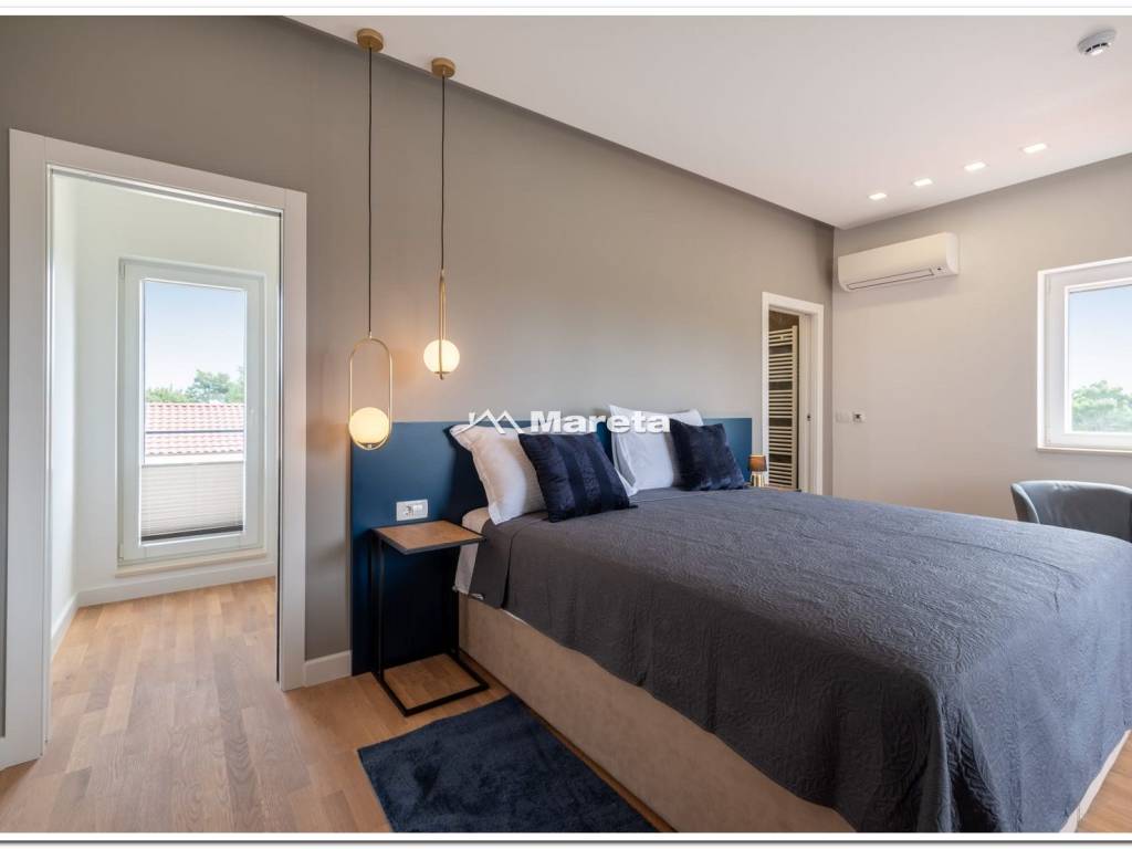 Kat: hodnik, tri prostrane spavaće sobe, tri elegantno uređene kupaonice, garderoba, natkrivena terasa s privatnim kutkom za odmor