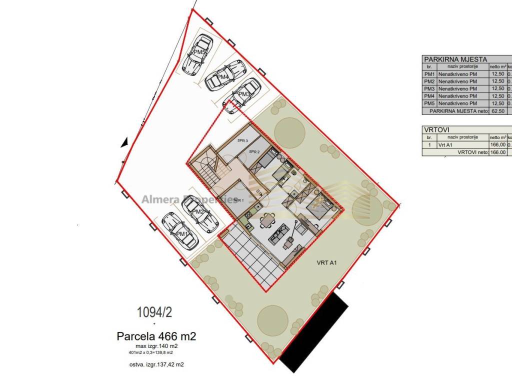 U centru Medulina prodaje se građevinsko zemljište sa građevinskom dozvolom za stambenu zgradu sa 3 stana.
