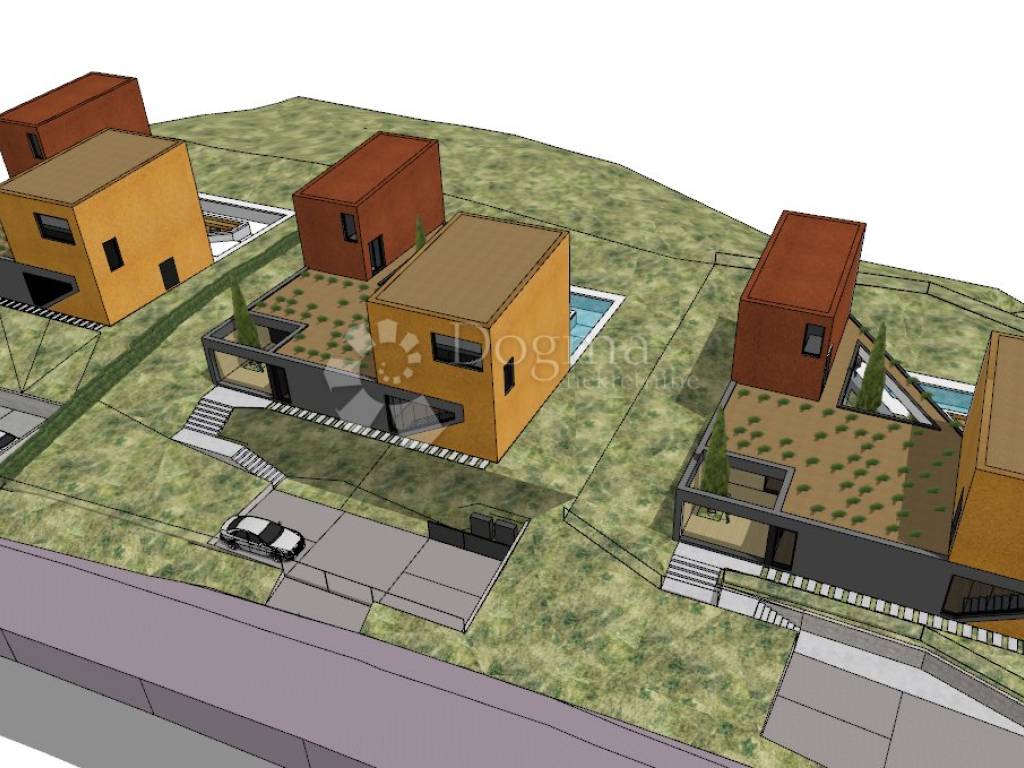 Ukupno 3874 m2 građevinskog zemljišta na privilegiranoj, povišenoj parceli s panoramskim pogledom na okolne brežuljke za 360 stupnjeva.