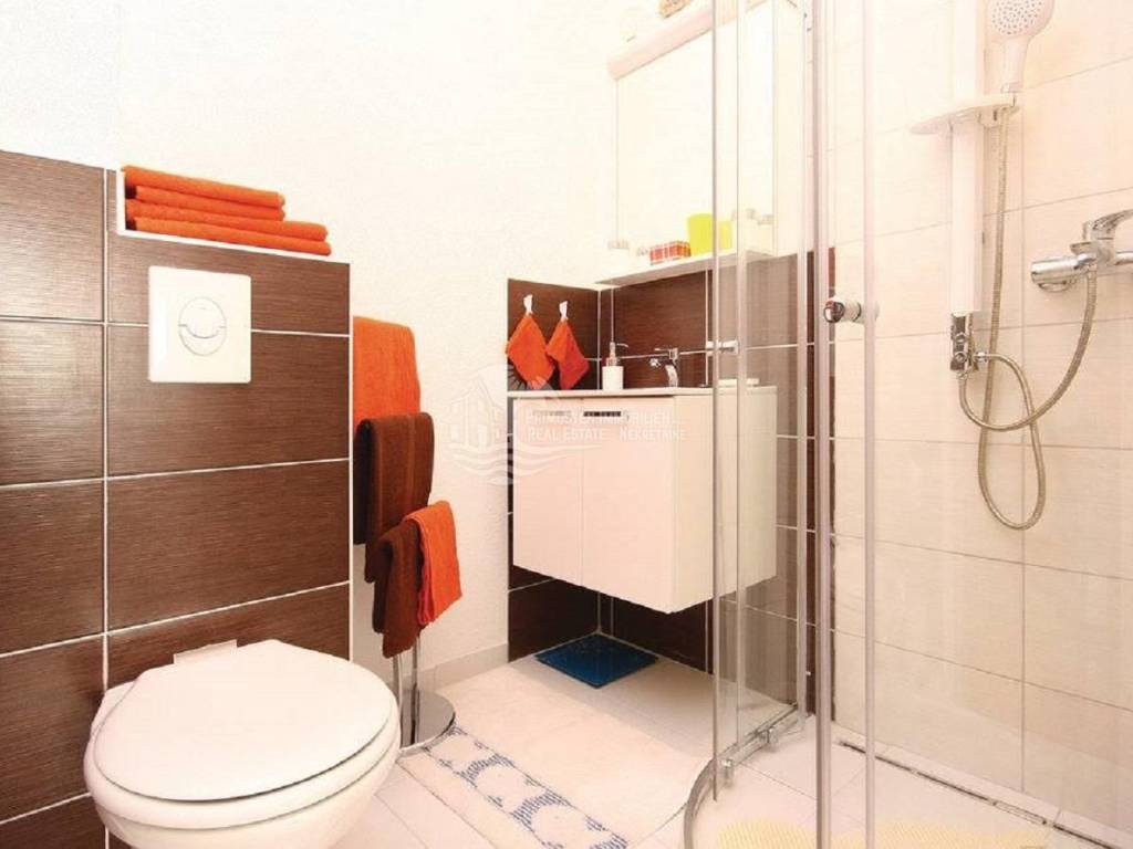 Villa for sale, in a sought after tourist destination, with designer and carefully decorated apartments. The villa has an area of ​​250 m2, was built on a plot of 520 m2 and the interior of the villa is decorated with special attention to details. The house is divided into ground floor, first and second floor. On the ground floor there is a three bedroom apartment according to the following layout: living room with dining room, two bedrooms, each with its own bathroom, and two exits to the balcony. The first floor is arranged on the same principle as the ground floor. On the second floor there are two one bedroom apartments according to the following layout: living room with kitchen, room and bathroom. All apartments are fully air-conditioned and equipped. The villa is well insulated, has solar panels for hot water, contains a security system and has 7 parking spaces. Villa also has a garden house of 25 m2. Behind the house is a small carefully landscaped garden which adds to the charm of this property. The house is located 50 m from the sea and has a beautiful view of the Adriatic Sea. Shops are nearby, the town of Šibenik is 10 km away, while Split Airport is 50 km away. The property can be used as a multi-family home, or as a great investment for renting apartments.