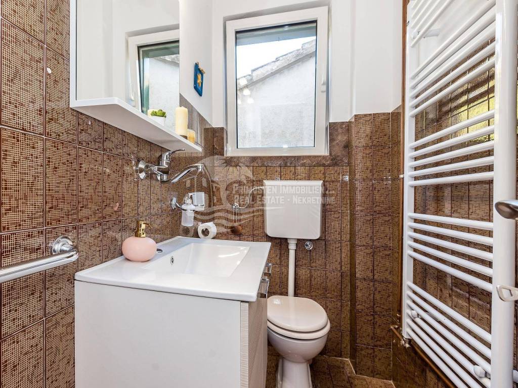 A two-storey villa with a pool near Sibenik is for sale, in a quiet and discreet location. The house has a living area of ​​245 m², and has plots with a total area of ​​5000 m². The land is planned to be divided into parcels for sale, and 1677 m² of house and garden would be sold as part of it. The house consists of a ground floor and a first floor, and it also has a tavern. The ground floor has an area of ​​94 m² and consists of a living room, dining room, kitchen, toilet, hallway and a covered terrace of 20 m². There is also a 25 m² garage on the ground floor. The upper floor has an area of ​​74 m² and there is also a covered terrace of 25 m² and a balcony of 15 m². On the first floor there are two bedrooms, two bathrooms and a staircase. Next to the house there is also a tavern of 77 m² with a covered terrace of 50 m². The tavern has a basement, bathroom, toilet, storage room and boiler room. The house is located in a quiet location, surrounded by a beautiful pine forest, and there is also a round swimming pool with an associated area for sunbathing and an outdoor shower. On the side of the house there is a barbecue and a children's playground. The advantage of buying a house is the possibility to agree on the size of the plot, the sea is a five-minute drive away, and the Krka National Park is nearby. The house has four stars and a well-established rental business.