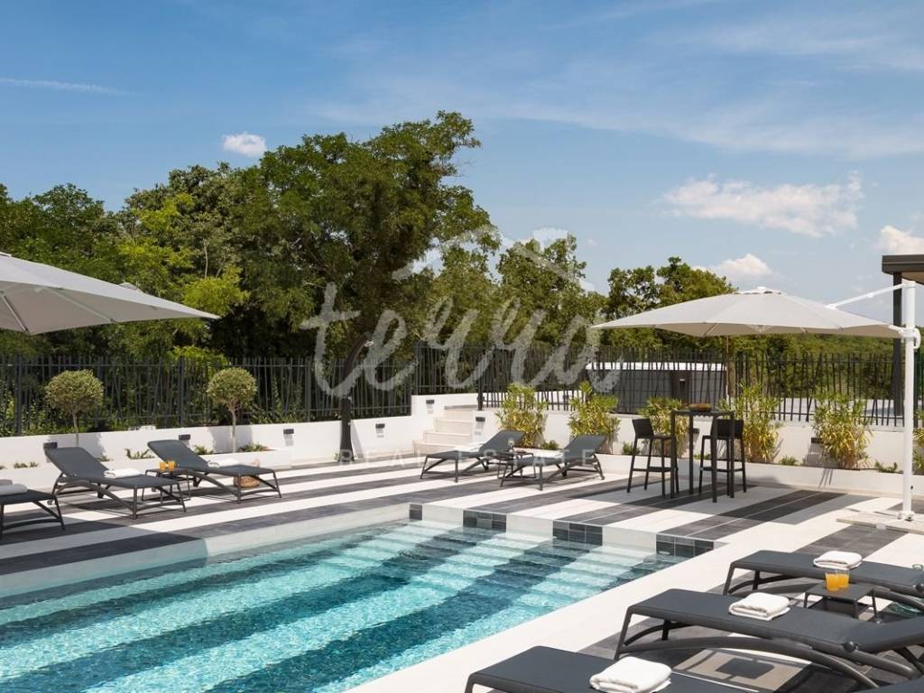 On a plot of 3700 square meters there is a heated swimming pool of 43 square meters, a beautiful sunbathing area. living room, separate covered summer kitchen, tennis court, outdoor gym and carport for 3 cars.